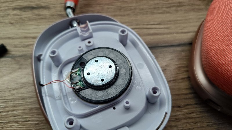 Чаши с лёгкостью отстёгиваются от амбушюр. Они на пластиковых защёлках. Внутри левой чаши размещается только 40 мм динамик. Соединительные провода имеют мягкую резиновую оболочку.
