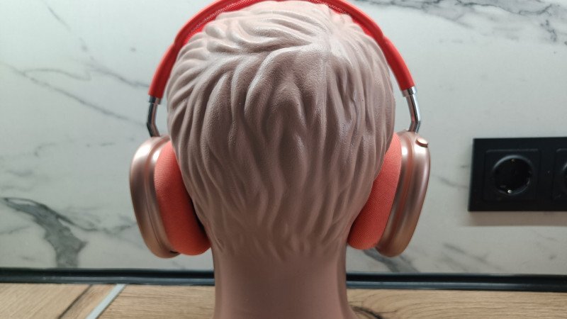 Расцветка у наушников довольно необычная. Оголовье в коралловом цвете, направляющие чашей в серебре, а сами чаши в розовом золоте. Это довольно необычно гармонирует и не выглядит бюджетно. Тем более ранее я не встречал в таких расцветках наушники. Даже бюджетный вариант.