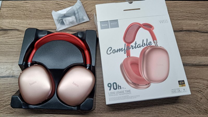 Компания Hoco представлена на рынке различными электронными гаджетами, но в последнее время можно встретить довольно интересные вещи. Предлагаю рассмотреть полноразмерные складные наушники w55, которые позволяет слушать музыку через беспроводной интерфейс bluetooth 5.4, подключение по проводу AUX, карту памяти. Воспроизведение звука за счёт 40-миллиметровых драйверов, управление с одной кнопки/крутилки и встроенный аккумулятор на 800 mAh. Заявлена поддержка hi-res audio и автономность до 90 часов.