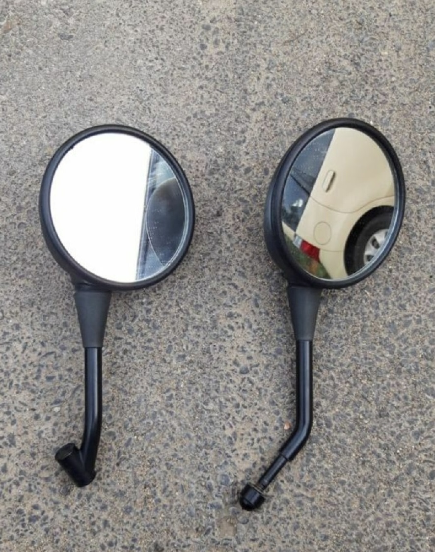 Зеркала. Они обычные круглые, как на советской мототехнике. Видно в них плохо, а в купе с вибрациями, картинка совсем «плывёт». То есть они есть, спасибо, но на этом всё.
