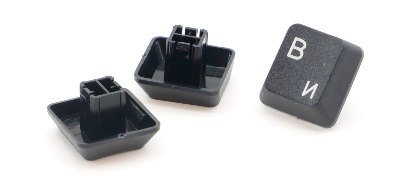 Сами клавиши выполнены из недорогого пластика с шероховатой структурой. Для данного типа клавиатуры не стоит говорить, что перед нами обычные клавиши, а не супердорогое двойное литье. Буквы нанесены белой краской, и ряды латиницы и кириллицы не разделены цветом.