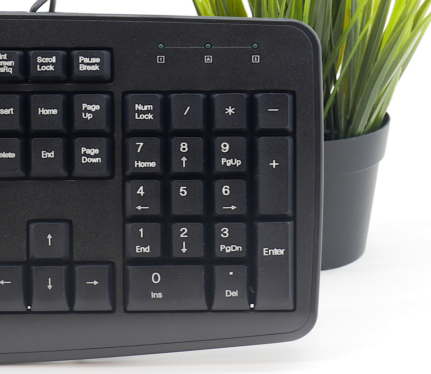 Справа находится цифровой блок, который очень любят пользователи, работающие с «числами»: бухгалтера, математики, учителя и т. п. Лично мне он кажется архаичным. На данной фотографии видно одно из нескольких сквозных отверстий: при заливании клавиатуры жидкость стечет наружу под основание. Всего найдено и посчитано 8 отверстий.