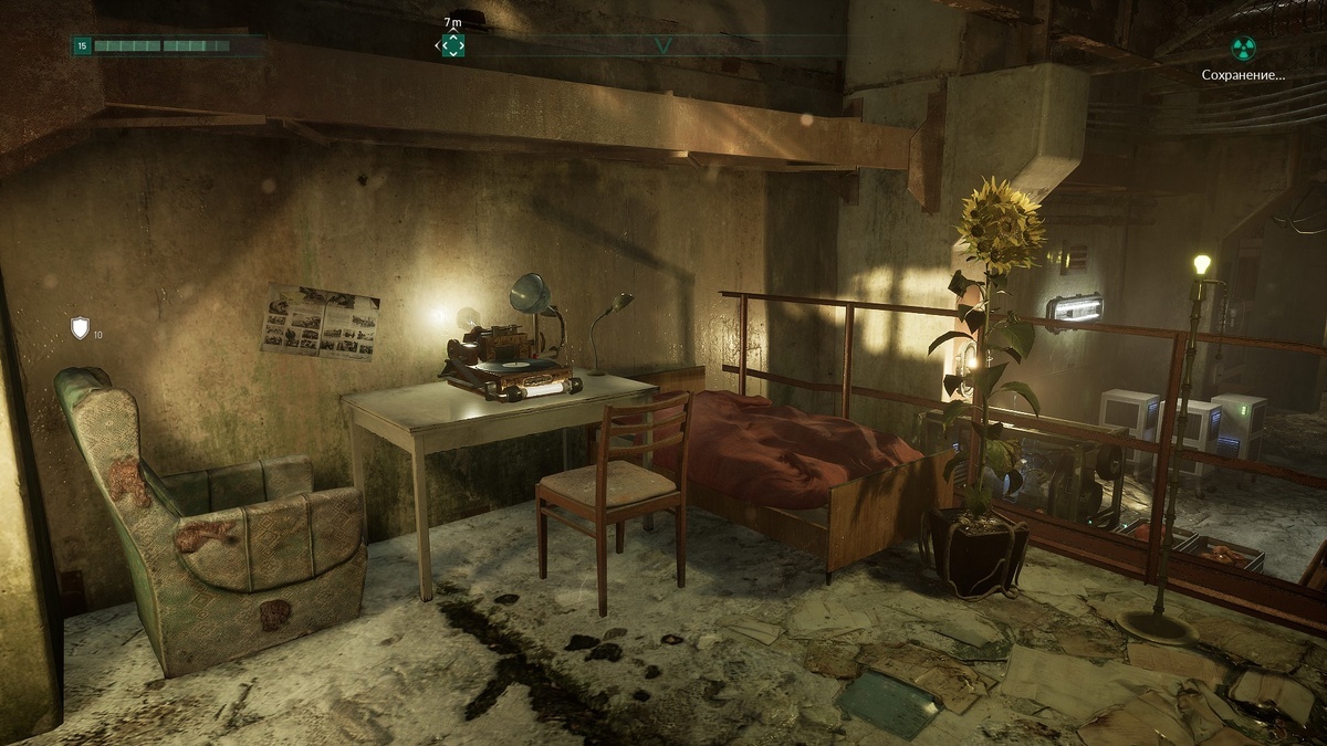 Так же у игры нет какого-то единого стиля. Монстры абсолютно невзрачные, будто бы взятые из бесплатных ассетов. Проработка окружения на уровне Зова Припяти 2009 года, а локации едва ли чем-то способны запомнится - обычные заброшки, коих мы видели в огромном количестве игр (конечно, за исключением совсем уж культовых вещей вроде Дуги, Колеса обозрения и Градирен). А классические советские и более-менее реалистичные образы техники и окружения соседствуют с непонятными Хай-Тек штуками, (по внутриигровой логике, собранными из металлолома, грибов и травы (и это не шутка)), что абсолютно рушит ощущение целостности мира и вызывает диссонанс.