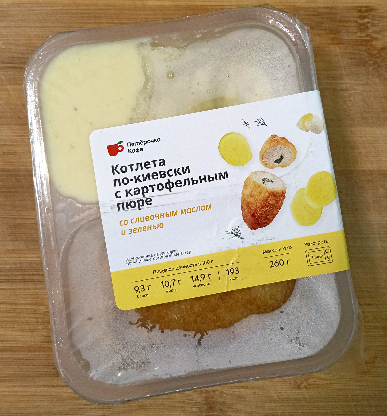 В комментариях к первой части достаточно часто и в положительном ключе упоминалась котлета по-киевски. Как на заказ, в очередном «поступлении» оказалась именно она.