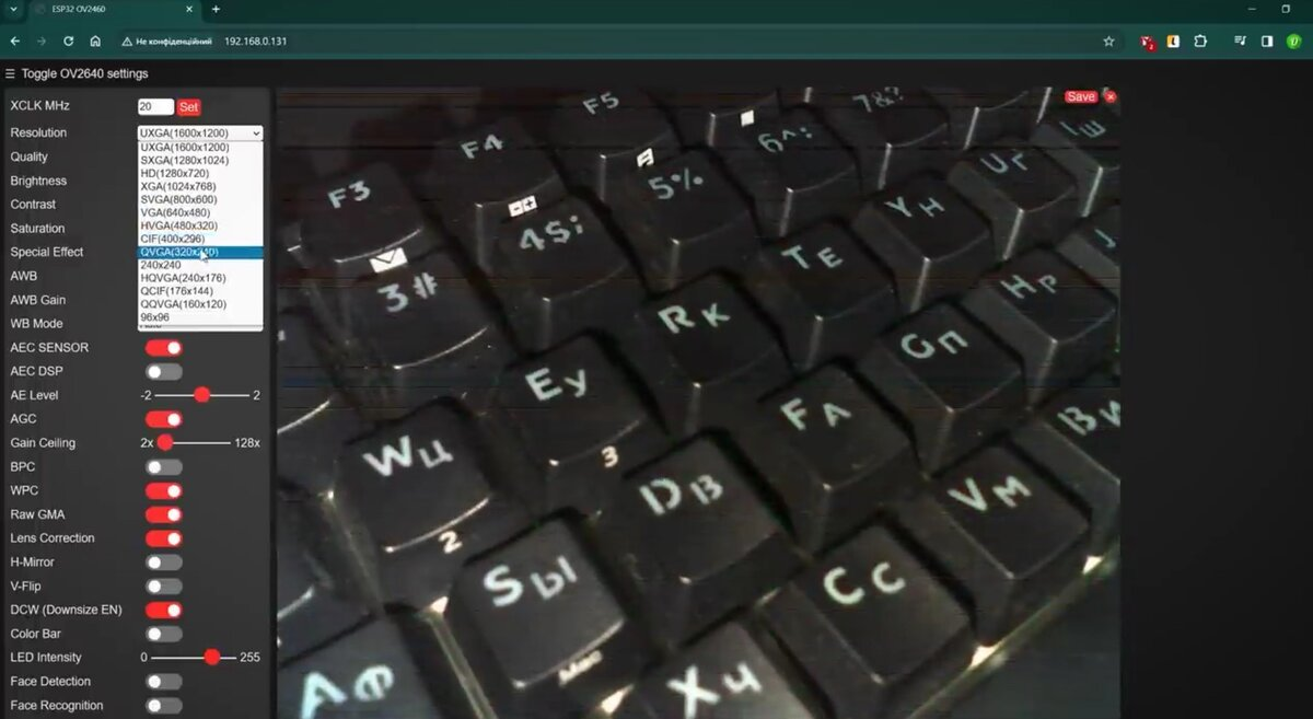 Копируем ссылку, переходим по нашему IP-адресу, и первое что можем изменить – это разрешение, советую ставить 640x480,