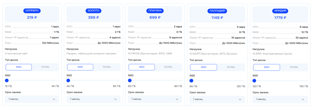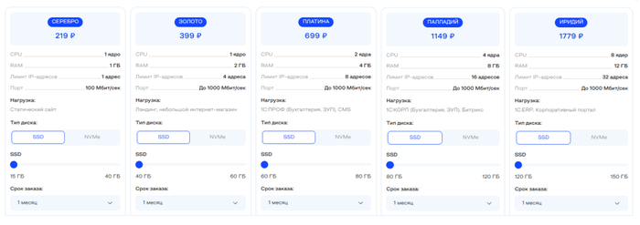 Нас интересует VDS/VPS с конфигурацией 1ядро/2ГБ/40 ГБ SSD.