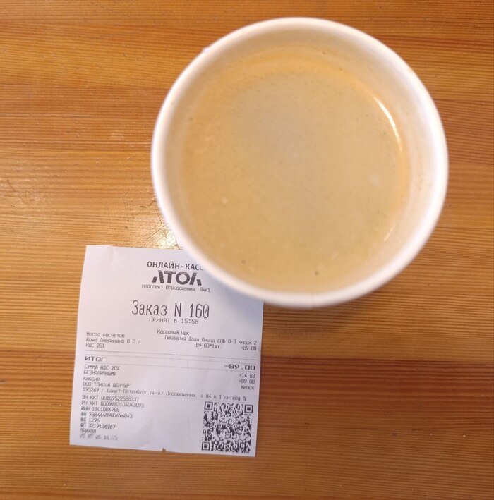 Изначально я не планировала посещать это место, но оно было рядом и это таки тоже фастфуд. Зайдя в "Теремок" я попала в настоящий ресторан, большое пространство с высокими потолками, стиль фьюжн в интерьере, множество дизайнерских ламп и светильников, мягкие и удобные кресла, играет лёгкий джаз. Н-да, в этом теремочке живут точно не мышка-норушка и лягушка-квакушка, а как минимум, человек, который удачно продал биткоин. Поэтому цене на кофе я не очень удивилась, кстати, в отличии от других заведений, здесь не было выбора объема стаканчика, американо был одного формата. Людей было очень много, там даже Вкусно - и точка проигрывает по этим показателям.