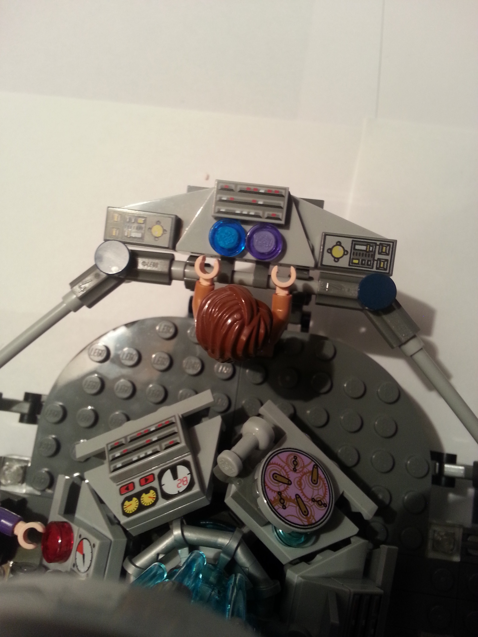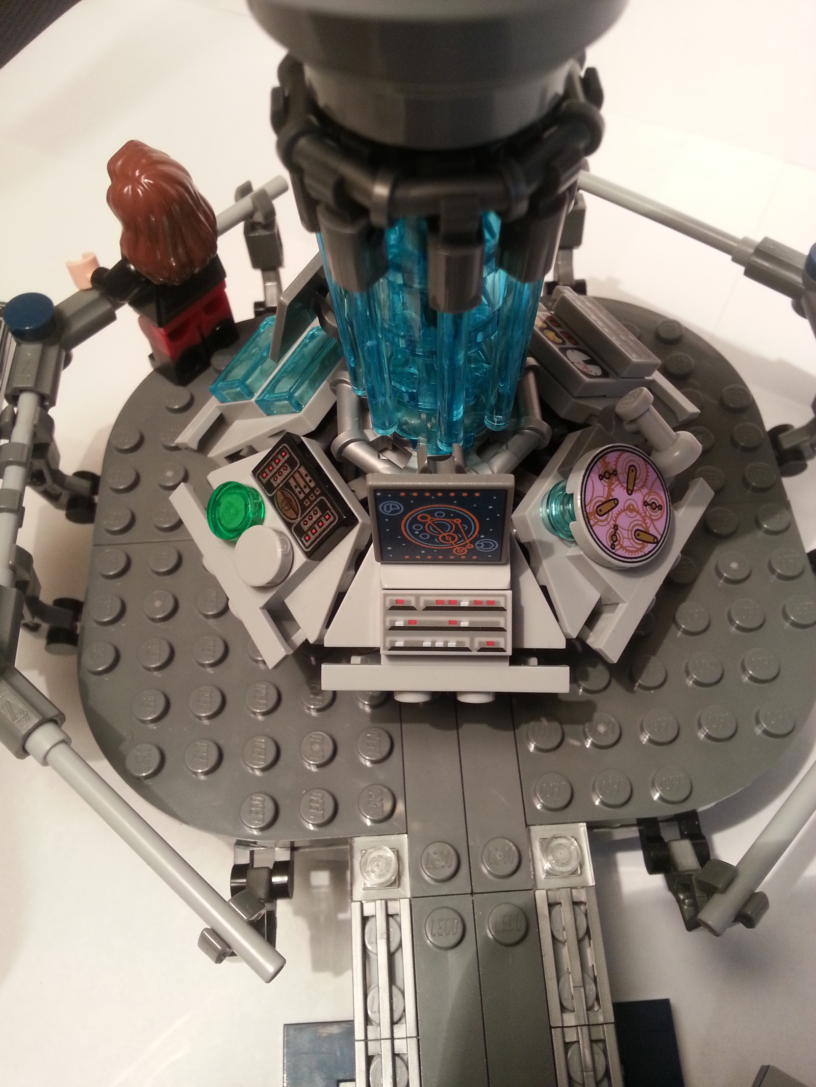 Лестница вниз как бы намекает, что ТАРДИС может быть бесконечной внутри. Плюс если у вас есть достаточно деталей Лего и фантазия, то можно достроить её по своему усмотрению!