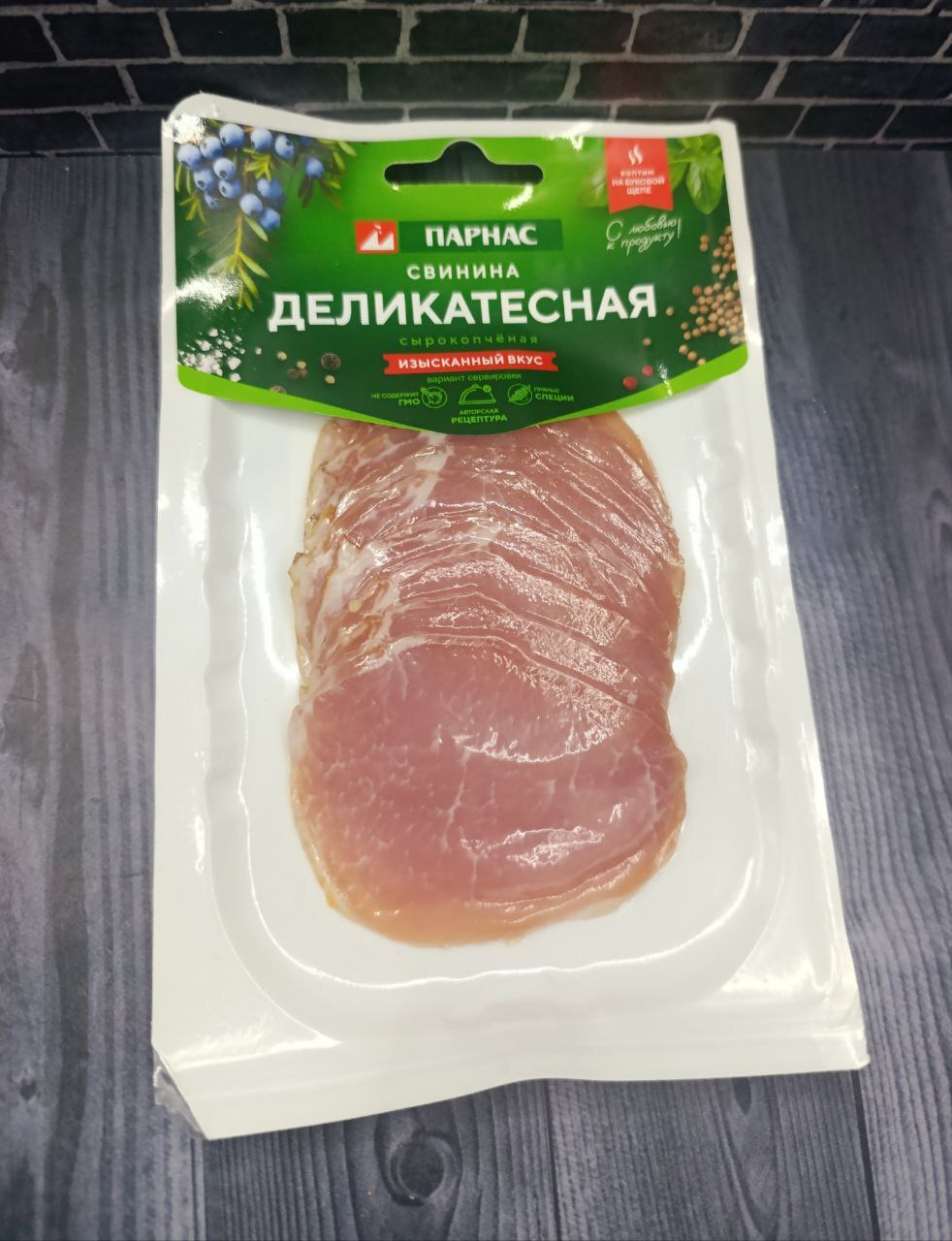 Продукт наш, из Санкт-Петербурга. Запах копчения присутствует, хоть ломтики почти прозрачные, но когда кладёшь его в рот, то полное ощущение, что откусил большой шмат копчёного мяса, кусок заполняет всю ротовую полость, он сочный и мягкий, не резиновый, жуется очень легко и вот ты уже тянешься за следующей порцией. Свинка не дожила до утра.