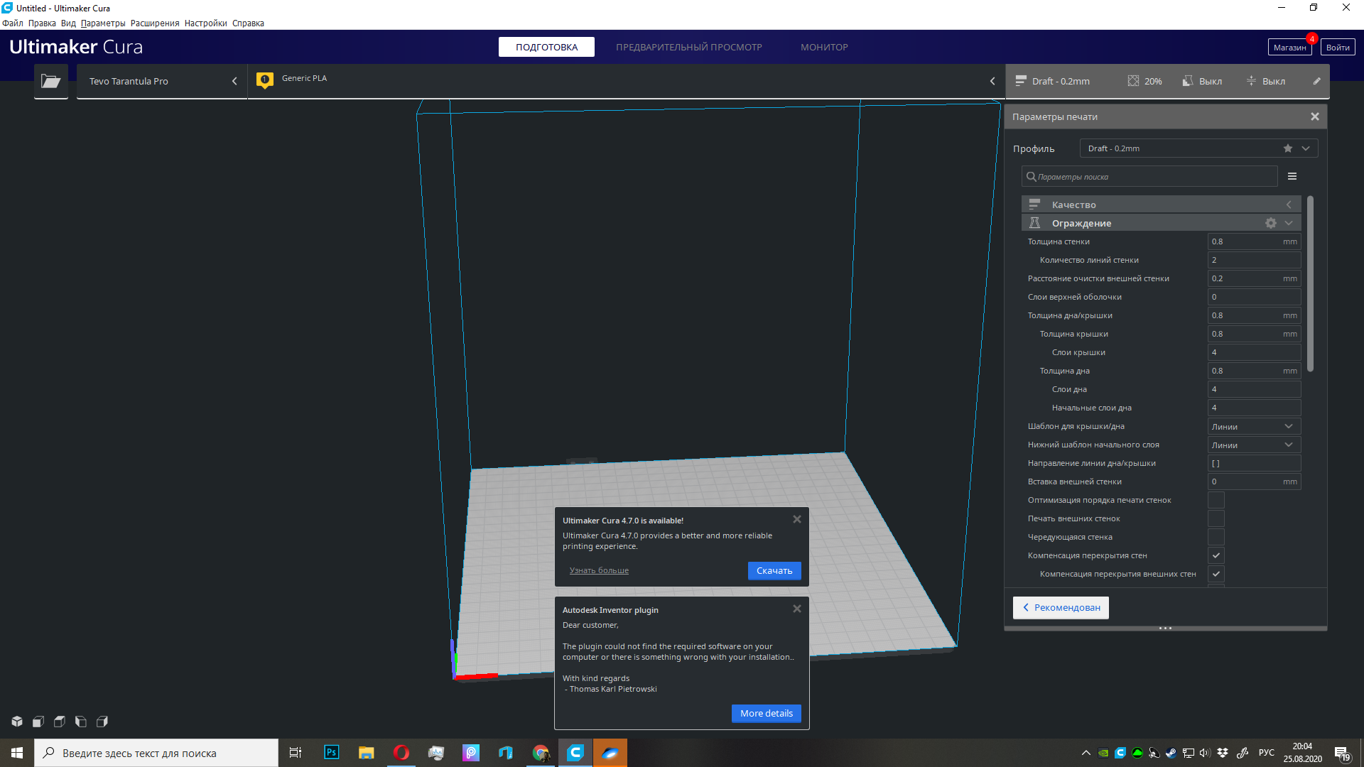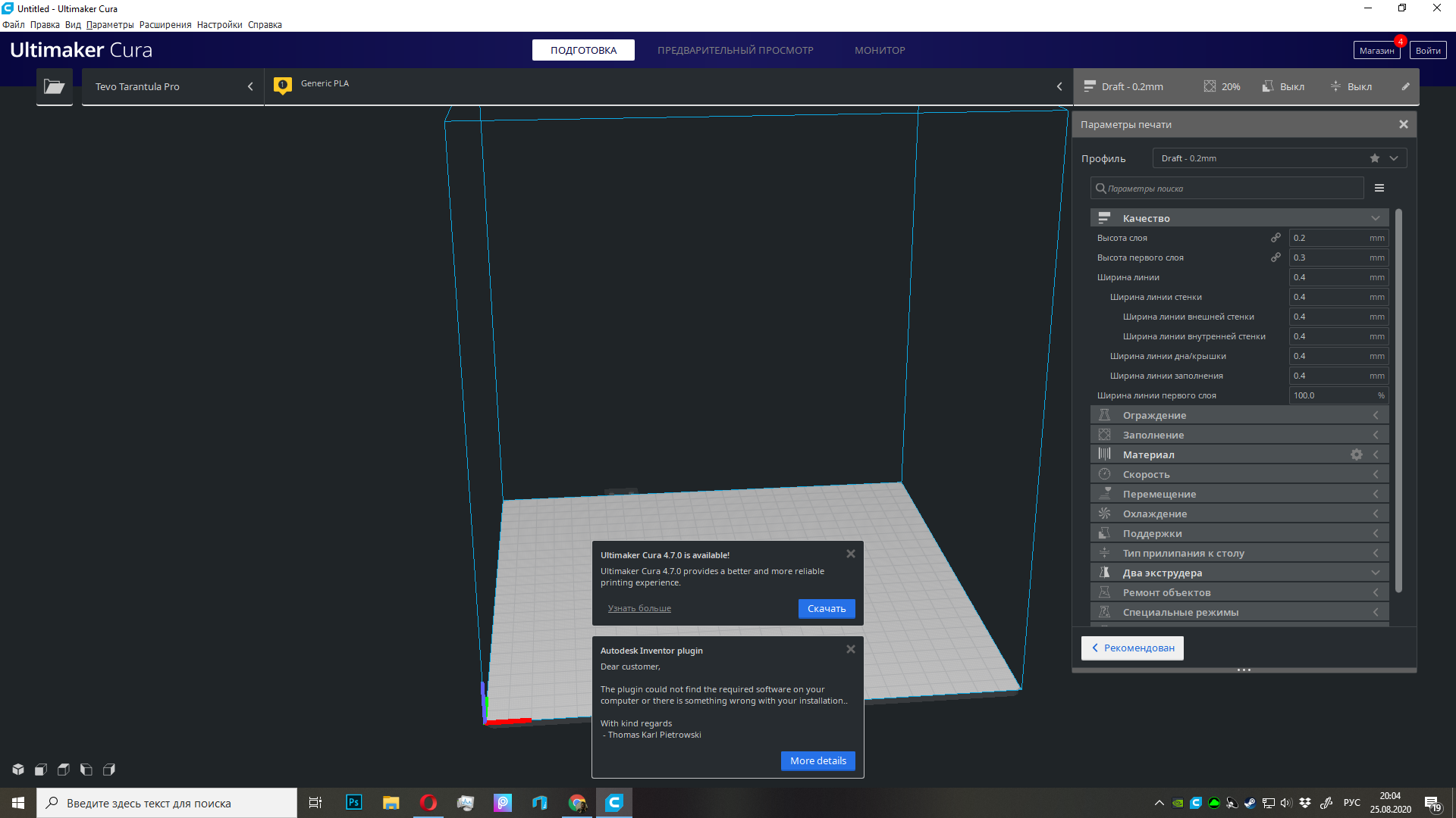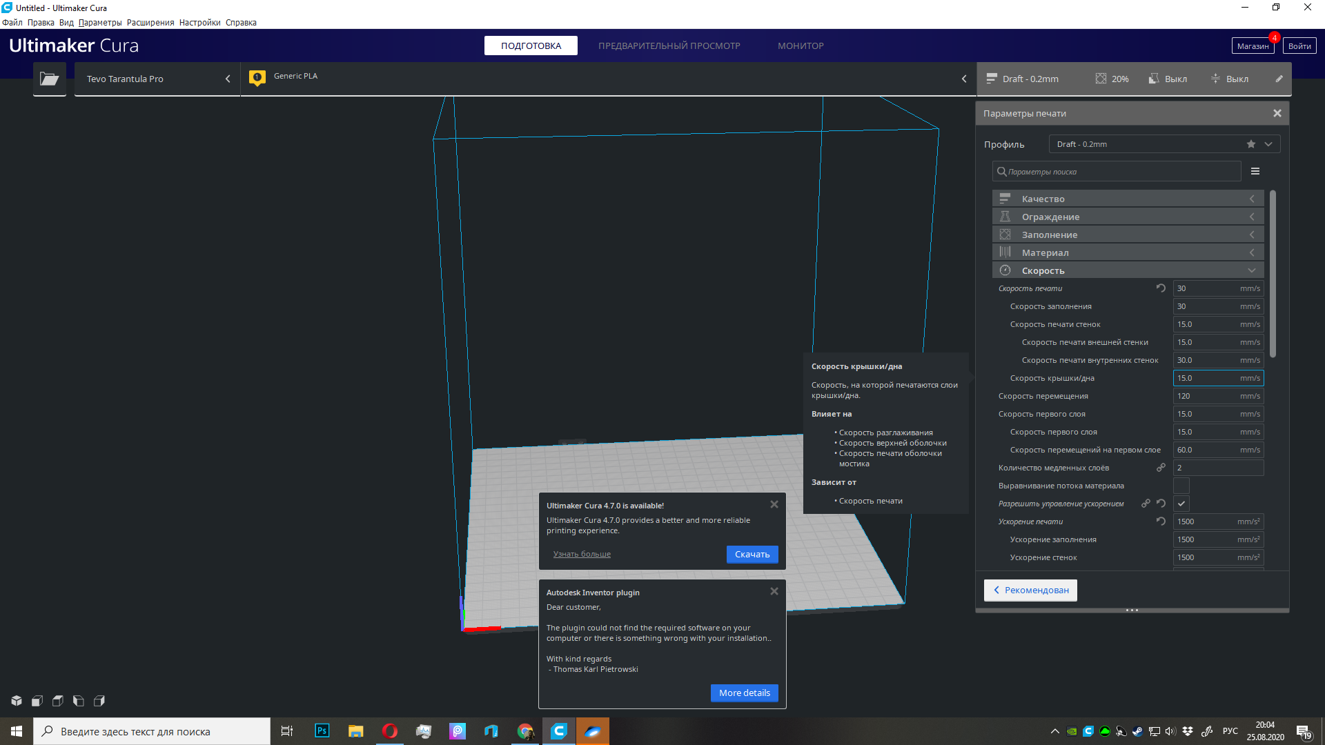 В настройках почти ничего не менялось. Это профиль куры для Tevo Tarantula Pro.