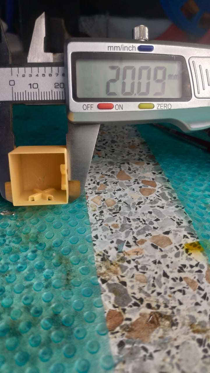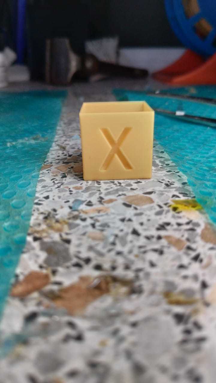 Cтороны измерять немного проблематично, сами понимаете, стенки гнутся. Пластик Петг, скорость 50мм/с, сопло сток 0.4.. Далее ещё пара кубов