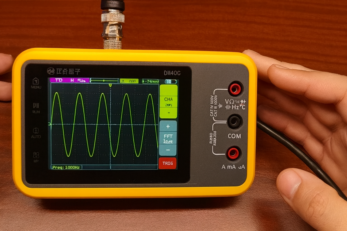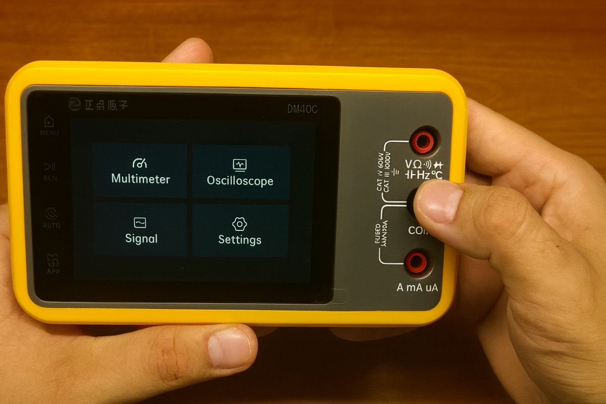 Встроенный осциллограф в Aliant DM40C рассчитан на работу до 10 МГц с частотой дискретизации 50 мегасемплов и 10-битным АЦП. Для компактного прибора это весьма достойный показатель, позволяющий комфортно анализировать сигналы в радиолюбительской и сервисной практике.