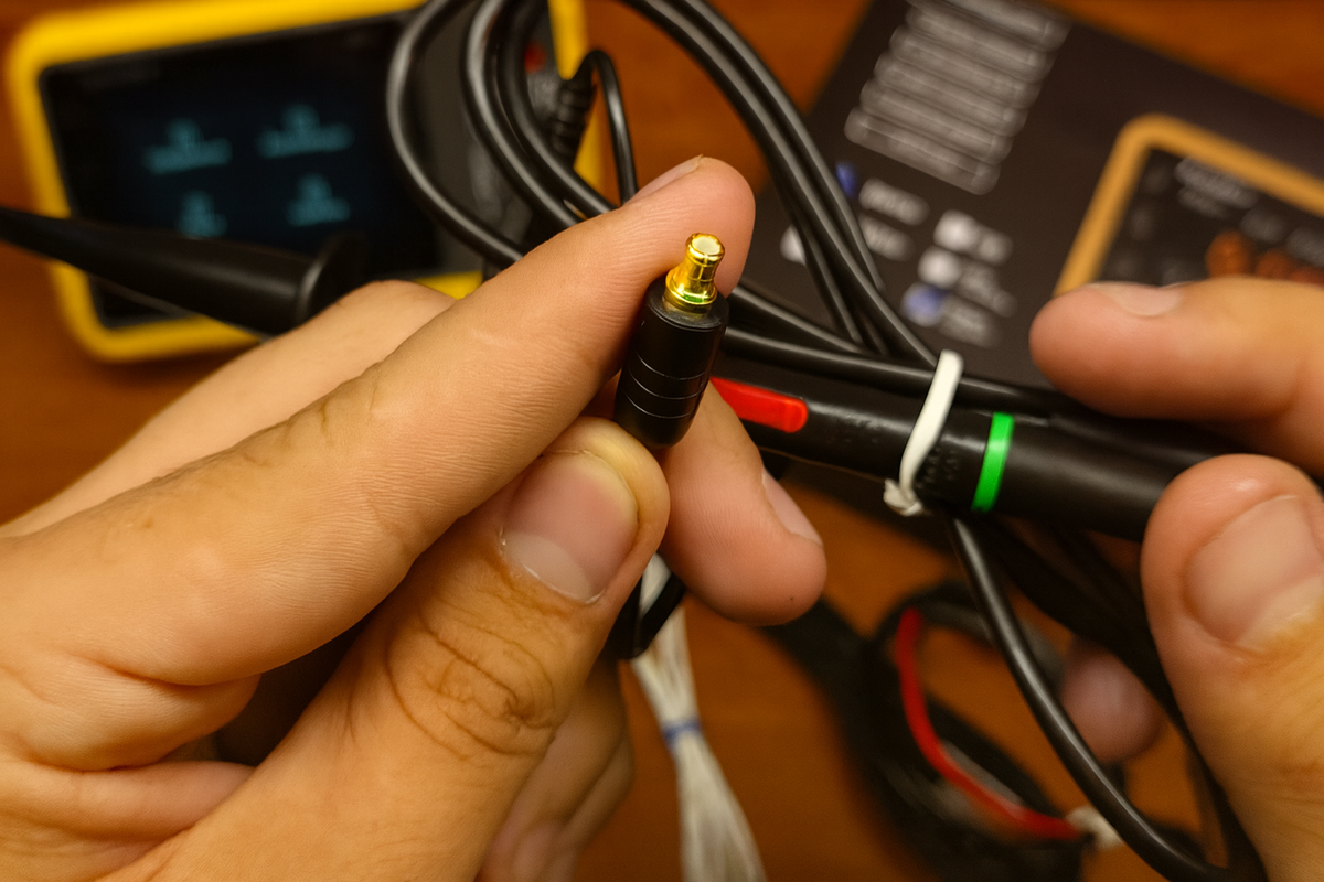 Особого внимания заслуживает осциллографический щуп с делителем 11X, оснащённый компактным разъёмом MCX. Это решение не только уменьшает размеры, но и упрощает подключение — никаких лишних фиксаторов и винтов, только надёжный щелчок.