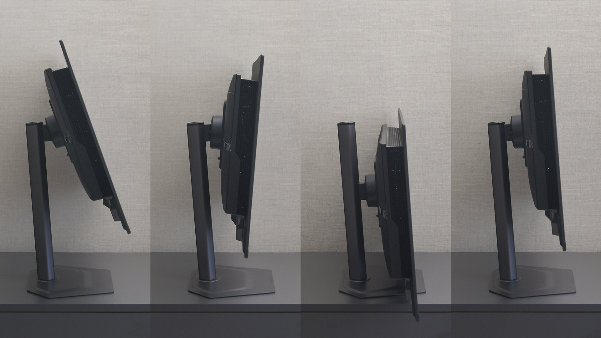…а также легко регулировать наклон (-5°~+21°) и высоту (13 см), просто потянув монитор в нужную сторону. Никаких дополнительных кнопок/фиксаторов для этого нажимать не нужно.