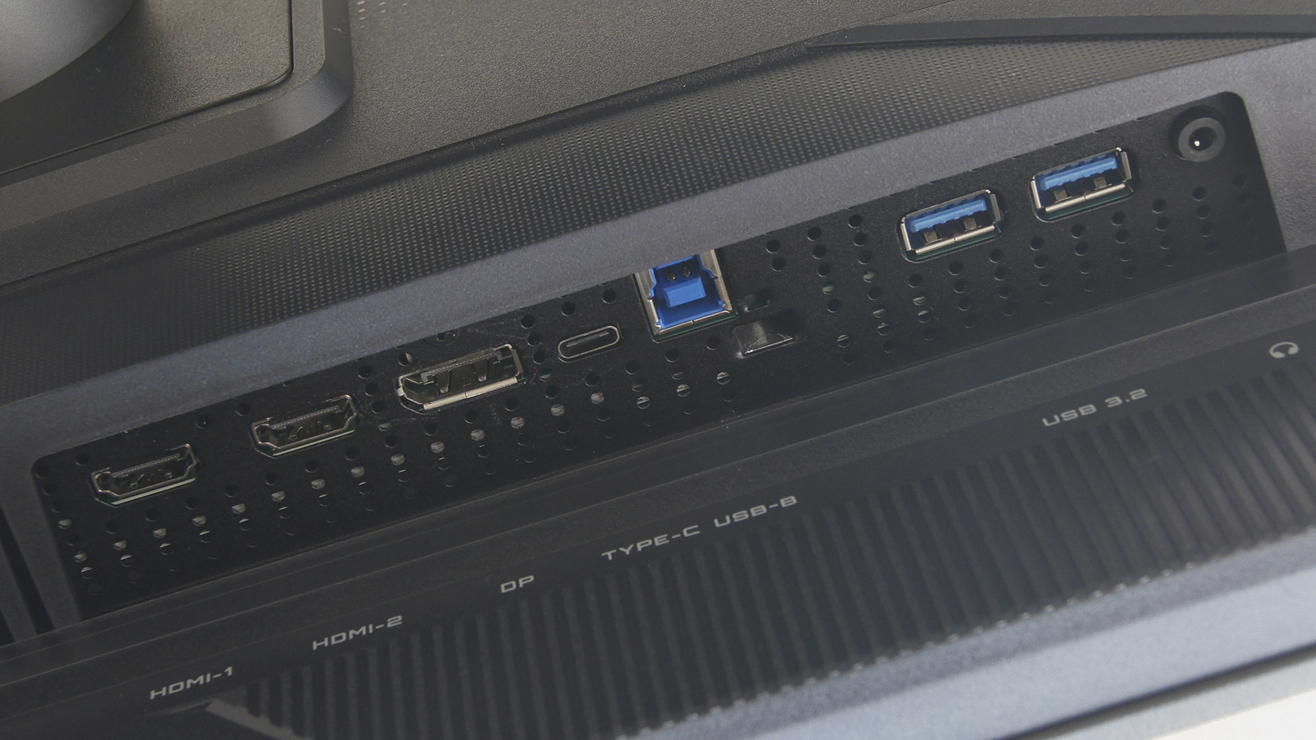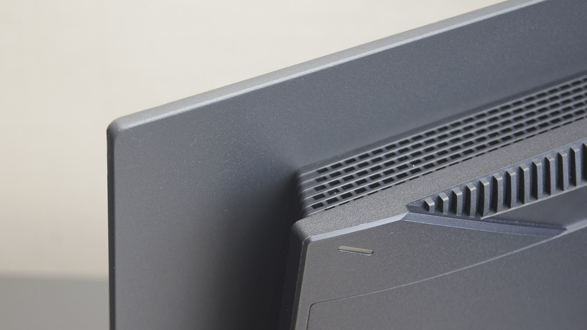 Тыльная сторона корпуса оформлена сдержанно. Декоративные элементы присутствуют, но реализованы они деликатно, разными фактурами вроде глянцевых вставок и полос, а также малозаметными надписями. Благодаря отсутствию агрессивной геймерской атрибутики, монитор впишется даже в строгий офисный интерьер или кабинет.