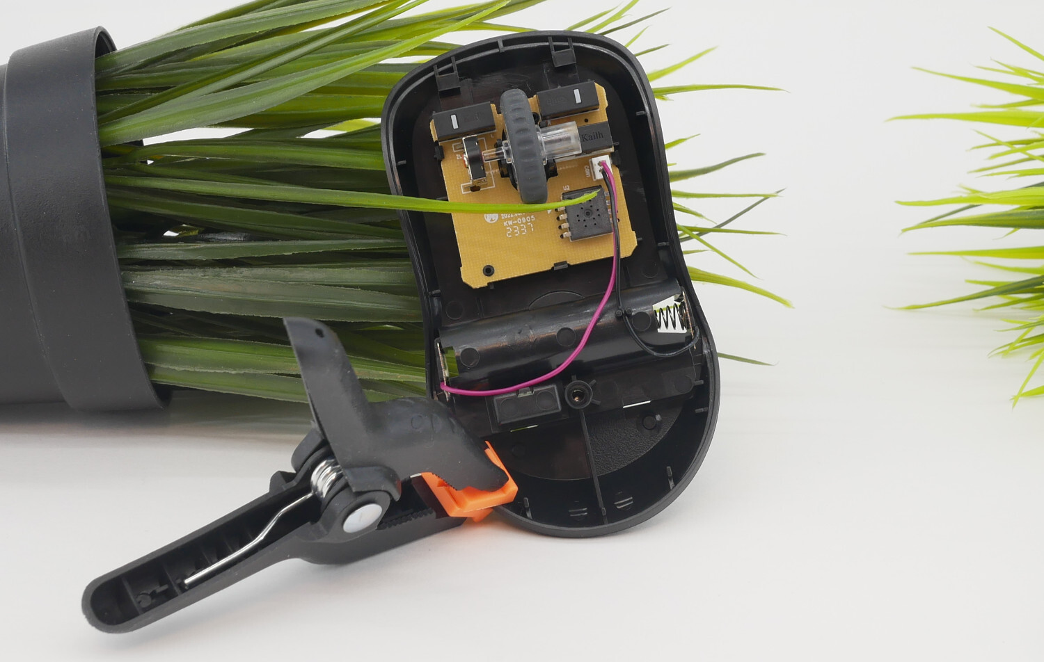 Защелка достаточно тугая, поэтому, если уронили мышь на пол, то она не отлетает. Плюсик. В кармашке находится и USB-ресивер для беспроводной связи по радиоканалу 2,4 ГГц. Поначалу я расстроился, что отсутствует батарейка, ведь Rapoo ее всегда кладет, но потом нашлась отдельно в коробке.