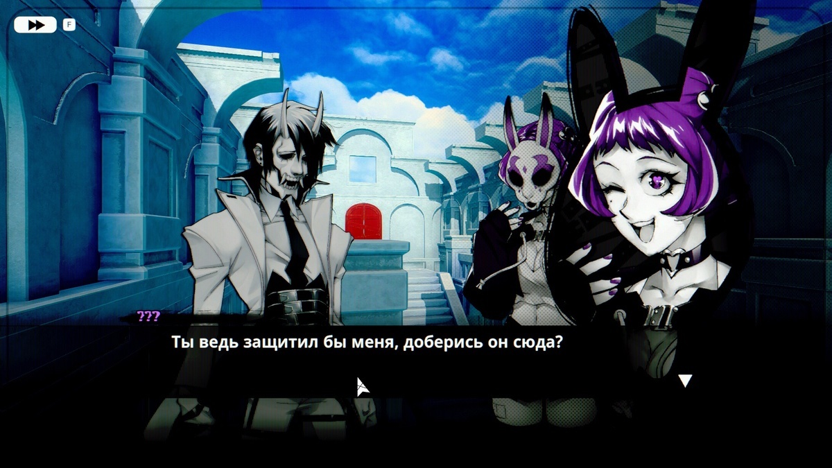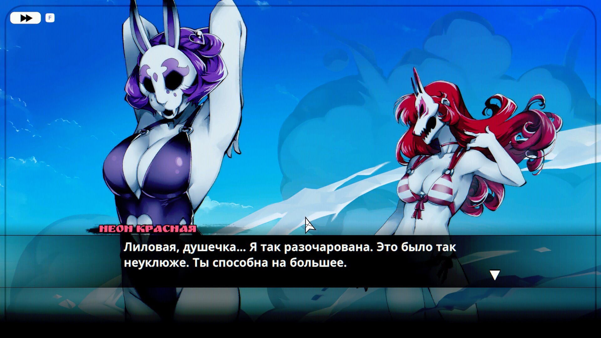 Конечно, анимешный дизайн может зайти далеко не всем, однако визуальная часть игры более чем органична. Разработчики поступили достаточно хитро, ассоциировав каждого персонажа со своим цветом и наделив соответствующими масками. Да и в целом, данный стиль достаточно запоминающийся и отдаёт какими-то старыми аниме. Хотя, конечно, обидно, что все статисты по-сути используют один и тот же образ.