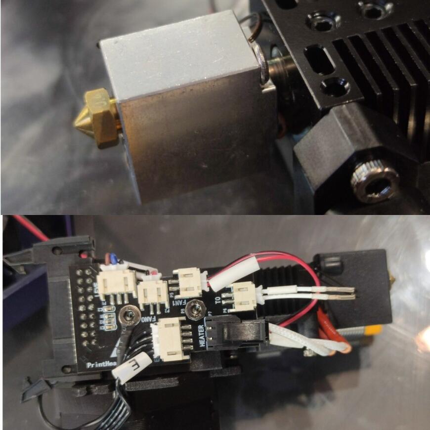 Есть и недостатки, такие как разъем для нагревателя. Все таки обычный xh2.54 есть уже везде и у всех, а этот даже не знаю как называется. Второй недостаток- стоковый термобарьер. Обычный сквозной с тефлоновой трубкой до сопла. Заменил на биметалл и се стало прекрасно.