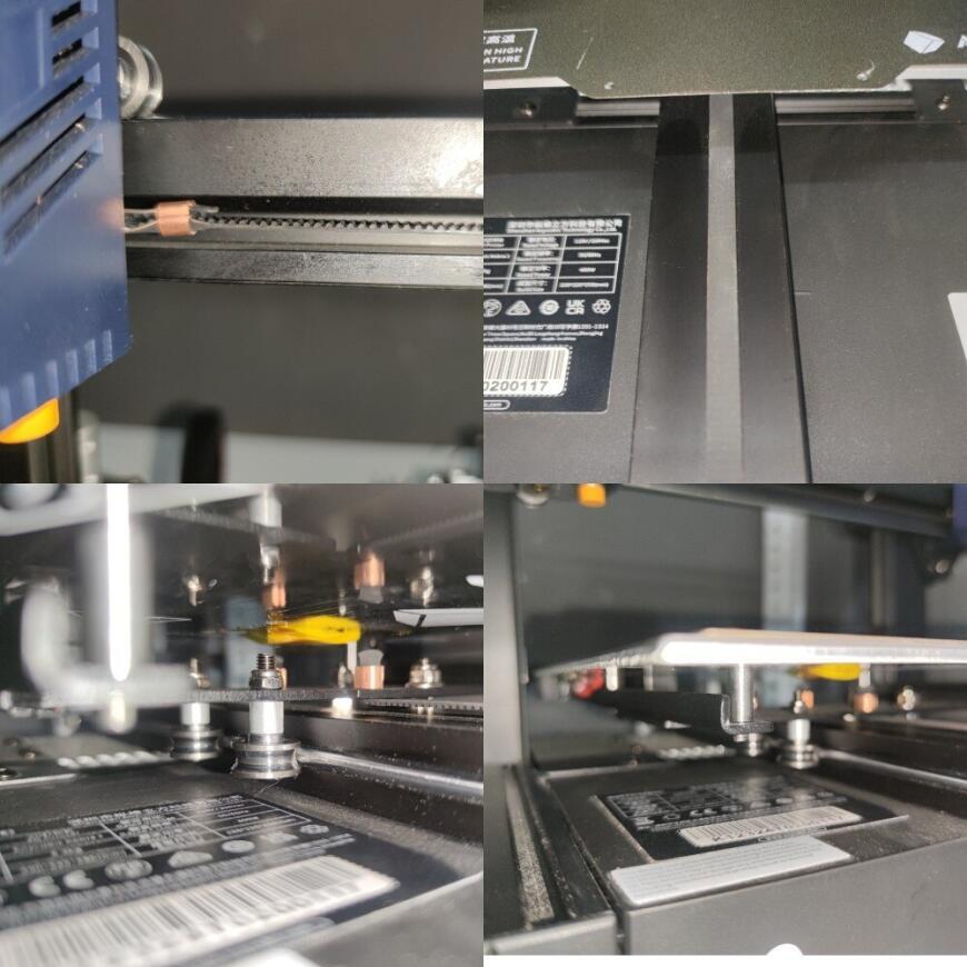 По механике принтера. В нем импользуются направляющие, которые редко где встретишь. Не знаю как они правильно называются, напишите пожалуйста в комментариях. Встретился я с ними впервые и честно говоря мне они поравились гораздо больше классических openbuilds колес. Бегают плавно, быстро. Не уверен надо ли их промазывать смазкой, но я это сделал на всякий случай. Плюс в принтере используются два трапециидальных винта с ремнем синхвонизации. По оси z правда оставили обычные колеса. Так же в принтере реализовано крепление пластины стола без регулировочных пружин. И лично мое мнение, что все принтеры с автоуровнем уже должны быть без них. Зачем? если есть авторегулировка то... Ко всему прочему ремни на данном станке 9мм. Я думаю плюсы очевидны. Опыть же в сравнении с эндерами, у коготых ремни 6мм.