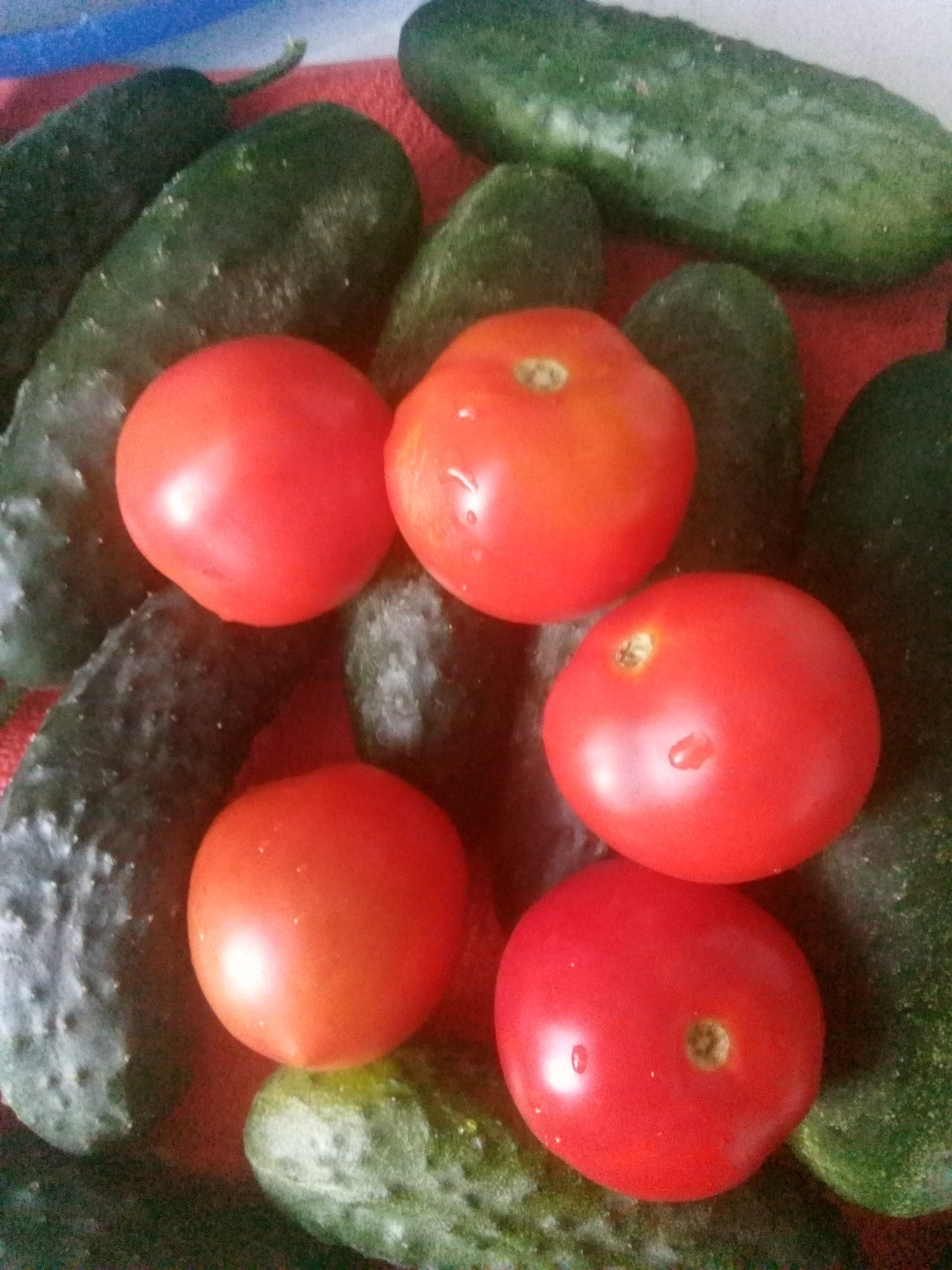 И вот наконец-то мы дождались не отдельных красных помидорок, а массового урожая.