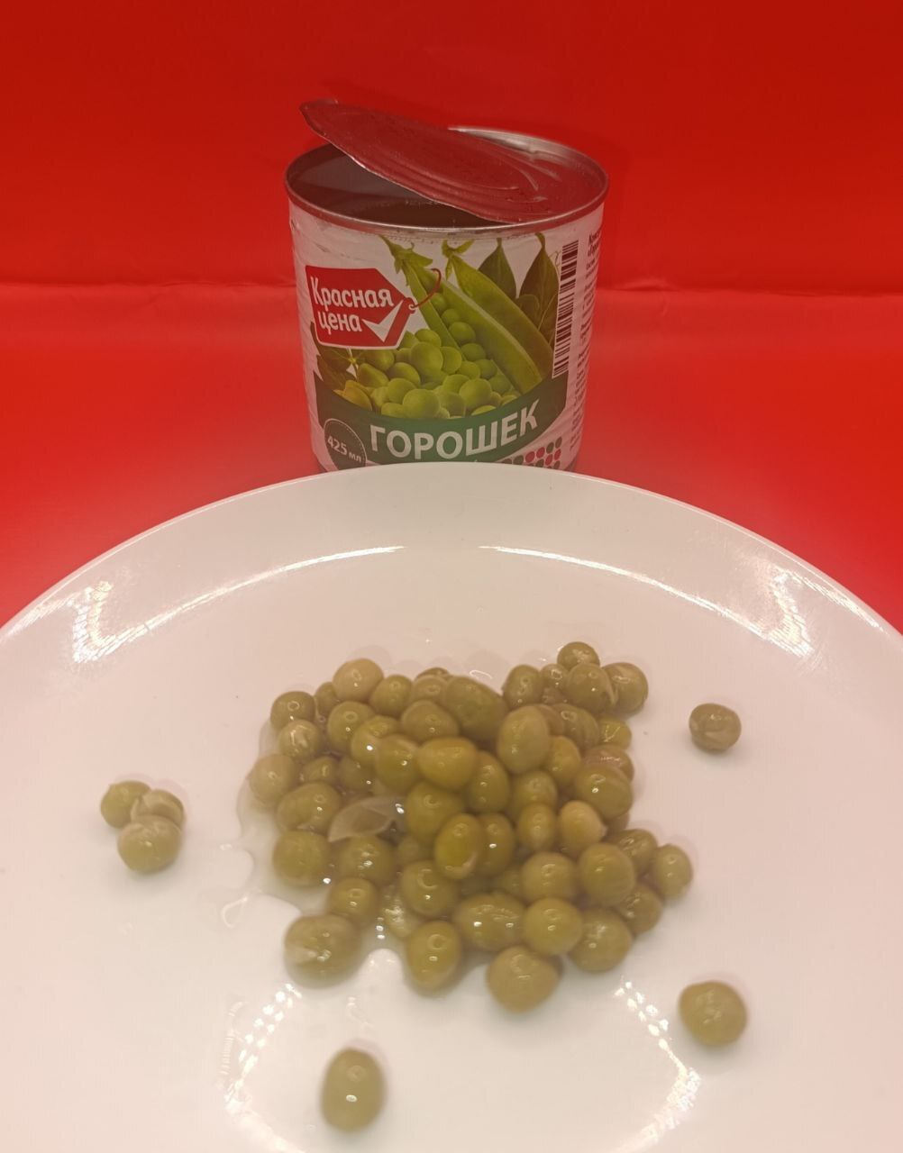 Рассол пахнет старыми немытыми овощами, сам горошек нежный и мягкий, но рассол сделал своё дело, это невозможно есть из-за вкуса старой ветоши, ушло в мусорку.