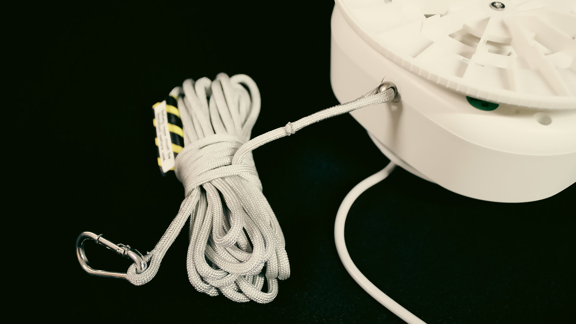 Второй элемент, служащий в качестве подстраховки – это длинный (4 метра) трос. Трос фиксируется к корпусу робота-мойщика при помощи винта. Трос рекомендуется цеплять выше уровня окна, например на гардину (если работа внутри помещения) или на любой выступ, если работа снаружи. Конечно, в случае Hutt DDC56 можно вообще не переживать, т.к. «хват» у него мертвый, однако подстраховаться никто не мешает!