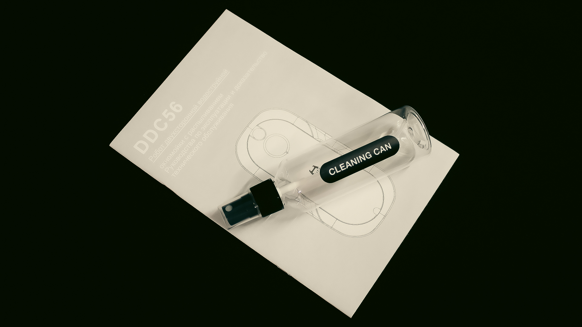 Дополнительно, возле кнопки запуска (управления) расположился резервуар для воды. Объем резервуара составляет целых 60 м. И да! Робот – мойщик окон Hutt DDC56 может выполнять как сухую, так и влажную уборку. Резервуар закрывается заглушкой для предотвращения протекания воды. Из некоторых удобств: на передней стороне корпуса имеется окошко, через которое можно видеть уровень воды в устройстве. Второй момент – в комплекте поставляется специальная емкость с распылителем, объем которой идентичен объему резервуара в корпусе.