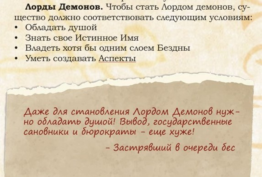 Вся представленная здесь лорная информация была отобрана по крупицам из старых книг и максимально актуализирована под современный лор и мироустройство. Многие Лорды Демонов явились прямиком из прошлого, как например Малкантет, других же мы придумали сами. Ходячие демонические замки, орды демонических аберраций и прочие ужасы уже ждут вас! Ну и да, важно отметить, что многие описанные здесь сущности могут выступать не только в качестве врагов или покровителей в злых кампаниях. Многие из них имеют весьма благородные цели и могут использоваться вами в любых кампаниях.