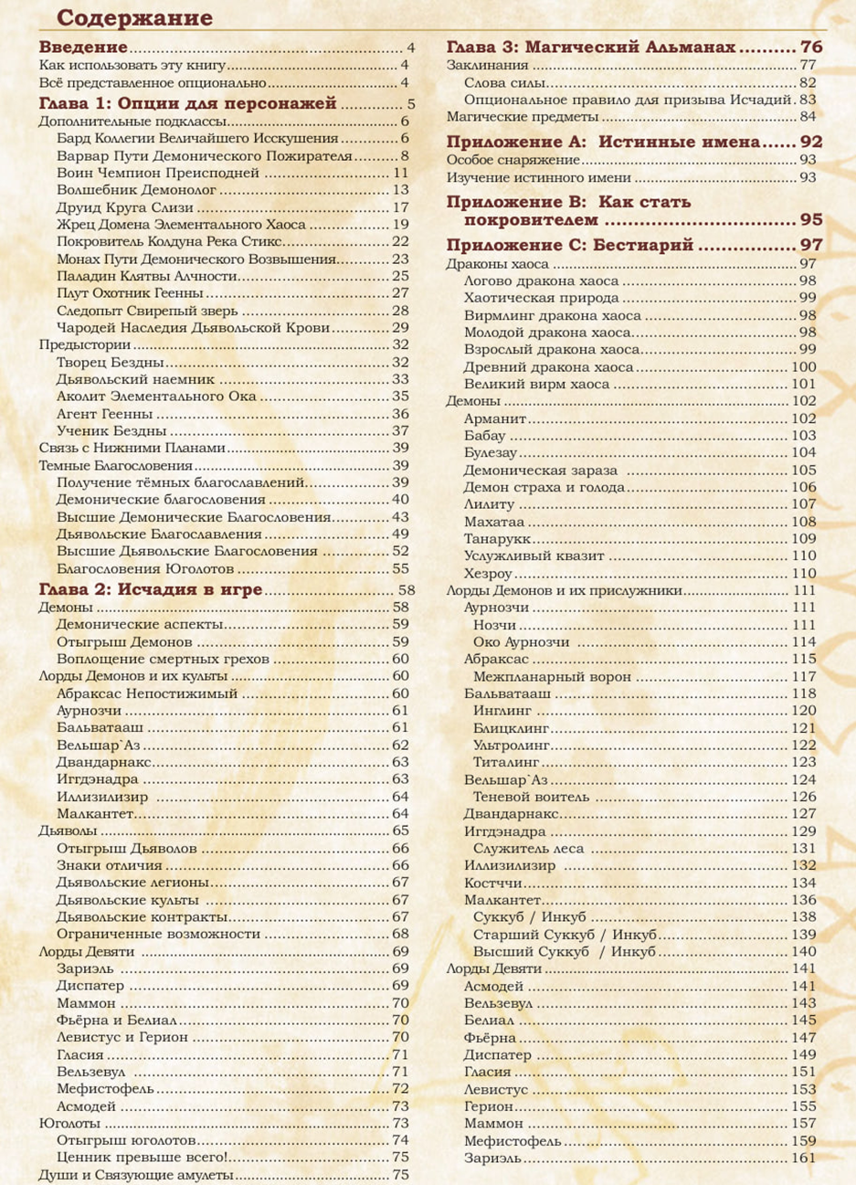 Вас ждет информация о Бездне, о бесконечной эволюции демонов и способе стать Лордом Демонов, а также множество связанных с этим механик. Мы расскажем об устройстве Девяти Преисподних и их обитателях, расскажем обо всех 9 кругах и правящих ими Лордах Девяти. Также не стоит забывать про юголотов! Про них не так уж и много информации, словно про этих ребят все забыли, так что у них здесь тоже будет минутка славы. Многие вещи были доработаны и расширены, чтобы разнообразить ваши игры, так что надеемся, что вы оцените.