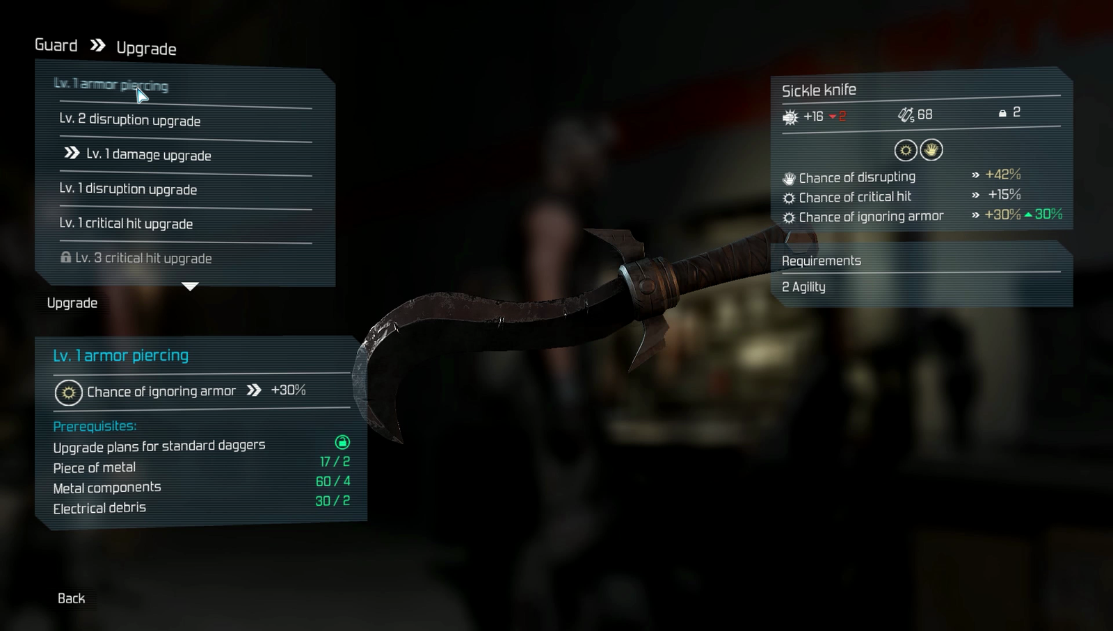 В игре также введен новомодный подход к крафту вещей, когда практически любой предмет, оружие или броню можно проапгрейдить с помощью гавна и палок , найденных на вашем трудном пути. Сделать это можно не абы где, а на специальных верстаках раскиданных по карте. Это вызывает удивление, ибо на вид эти верстаки выглядят богато и если наличие такого верстака в какой-то лаборатории оправданно, то нахождение его на улице в самом стремном углу трущоб, конечно заставляет только развести руками.