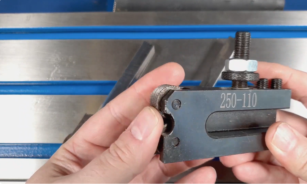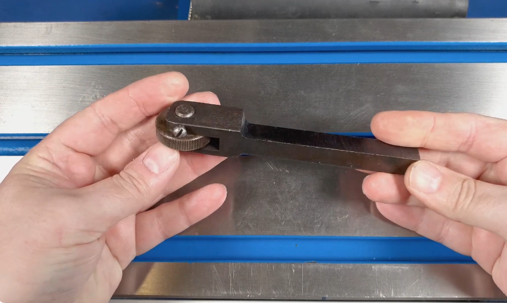 Также была вот такая модель с двумя роликами и подвижной головкой. Мне пришлось фрезеровать с ее державки часть материала, чтобы можно было зажать ее в резцедержку небольшого настольного станка.