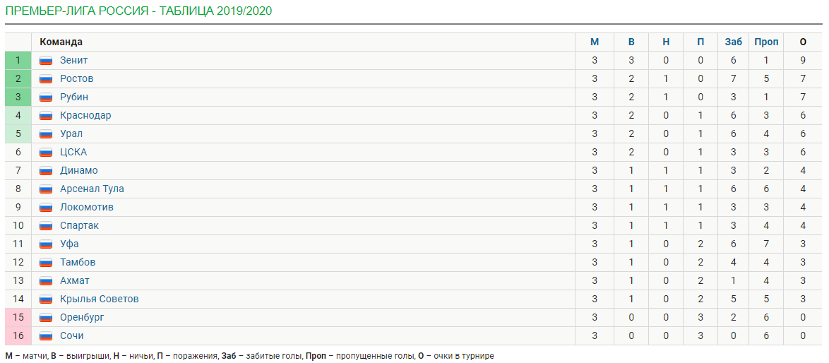 Турнирная таблица после 3 тура: