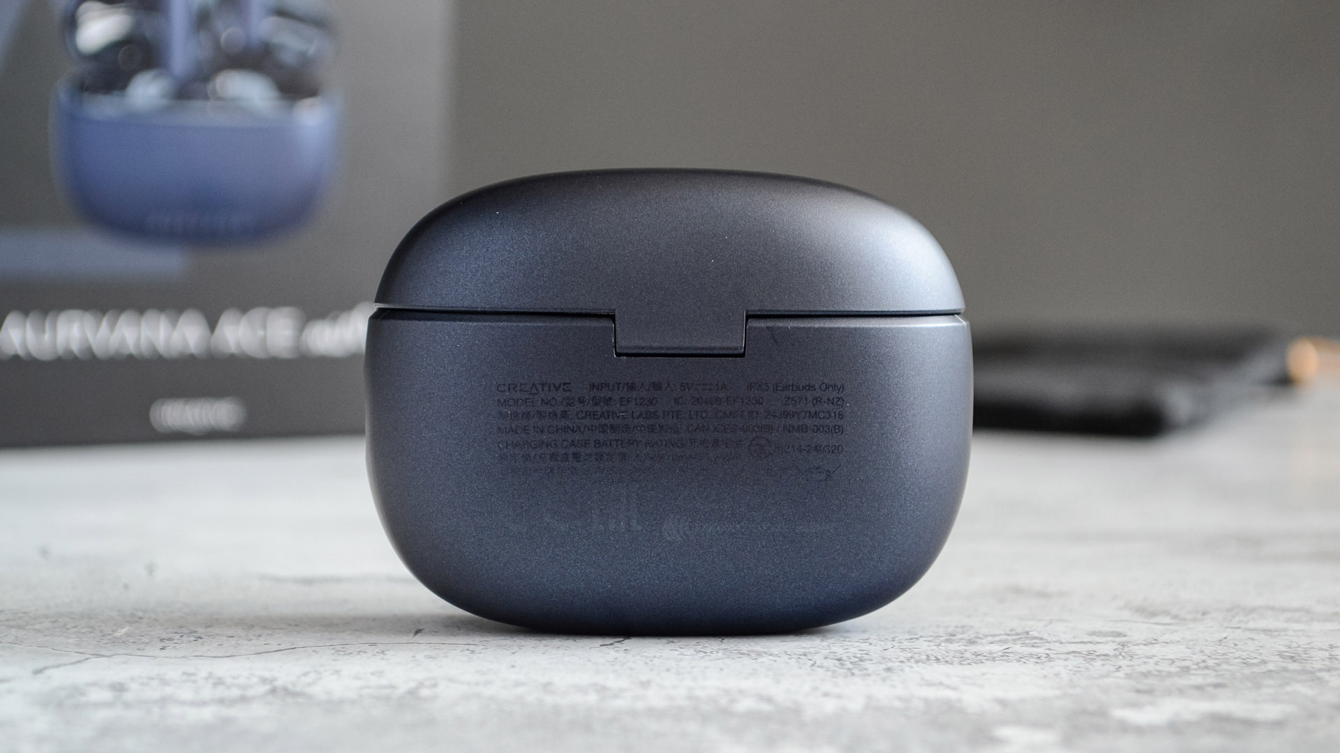 На обратной стороне кейса краской нанесена информация об устройстве, большая часть из которой малоинтересна. Из полезного: указана емкость аккумулятора кейса (470 мАч) и наушников (52 мАч).