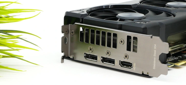 Для видеокарты Rаdeоn RX 9060 XT подготовлены и используются три видеовыхода: два DP 2.1a и один HDMI 2.1b. Задняя планка выполнена из нержавеющей стали марки 304.