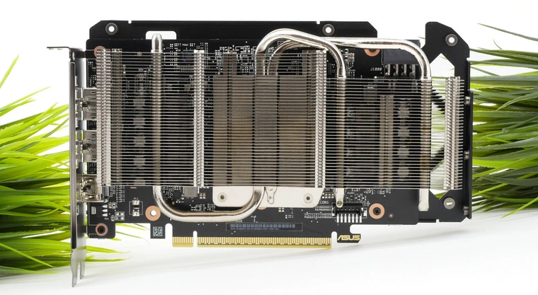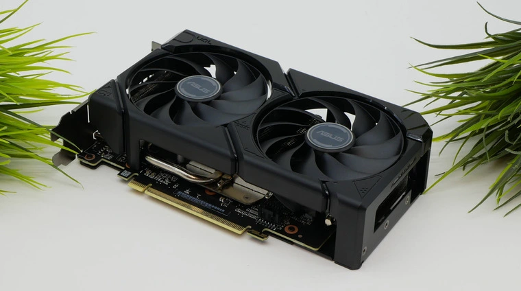 Несмотря на свои небольшие габариты в длину, частично разработчики компенсировали эффективность охлаждения увеличением толщины основного радиатора. Поэтому ASUS DUAL Radeon RX 9060 XT занимает 2,5 слота расширения.