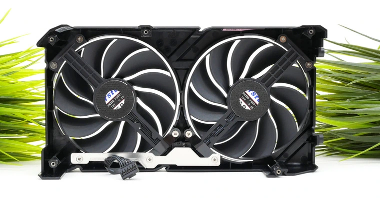 В качестве активной части выступают два вентилятора ASUS Axial-tech с диаметром крыльчатки 89 мм. Производитель — FirstD, вентиляторы парные с возможностью замены.