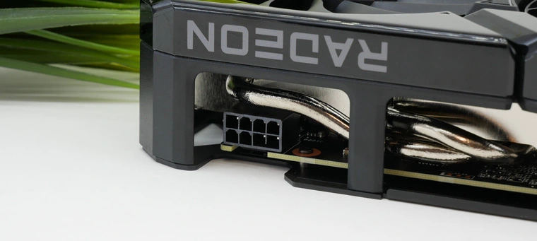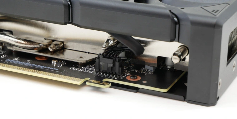 Энергопотребление видеокарты составляет 140-160 Вт. Дополнительное питание реализовано через единственный разъем 8-pin GPU на краю печатной платы, аккуратно замаскированным в кожухе системы охлаждения.