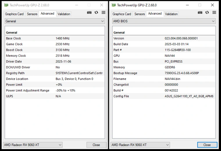 Приведем подробные характеристики BIOS модели ASUS DUAL Radeon RX 9060 XT. Она имеeт Power Limit, рaвный 150W, с возможнoстью увеличeния до 165W.