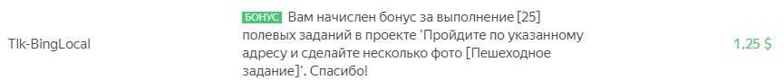 Также за количество выполненных заданий в целом (за 25 выполненных полевых заданий, например, начислили 1,25$ сверху).