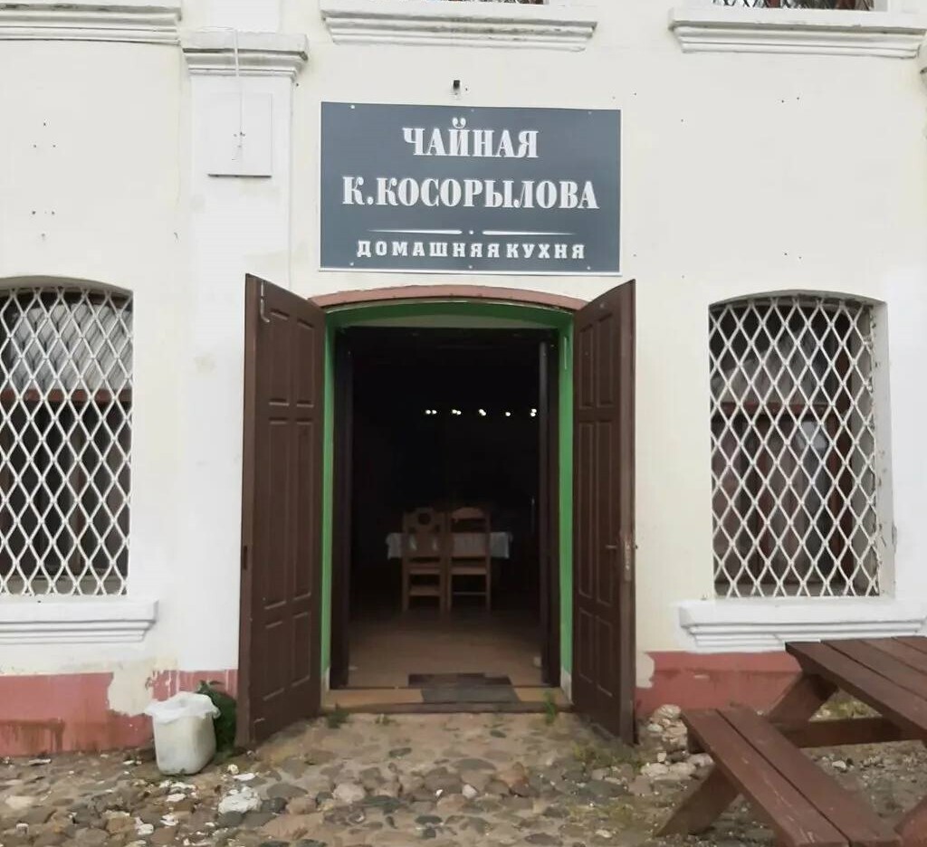 С последней связана еще одна давняя история. Был такой художник Маковский, он писал Плёс социальный, с людьми и городскими событиями. Так вот, у художника вышел конфликт с тогдашним владельцем чайной, в которой художника задели. Рисуя очередную картину с видами города, художник в отместку исказил фамилию хозяина на вывеске заведения. И место вошло в историю на века как чайная Косорылова. Что сейчас и воспроизведено в вывеске заведения.