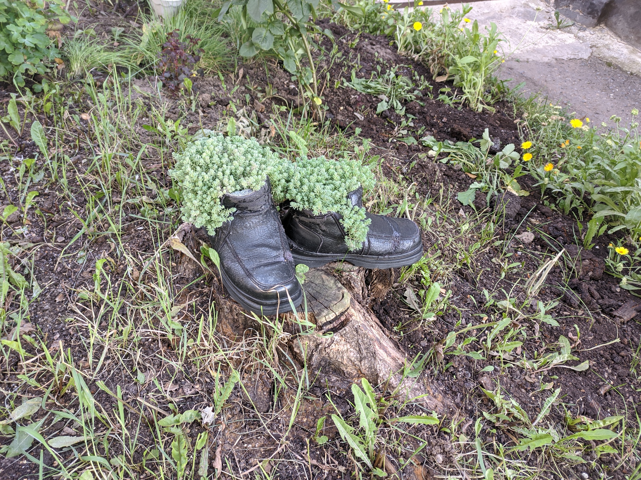 21 Shpox Очень мило, очень по русски 4 года назад Во дворе увидел, не смог удержаться, поделился) [моё] Сад Декор Цветы Ещё 0