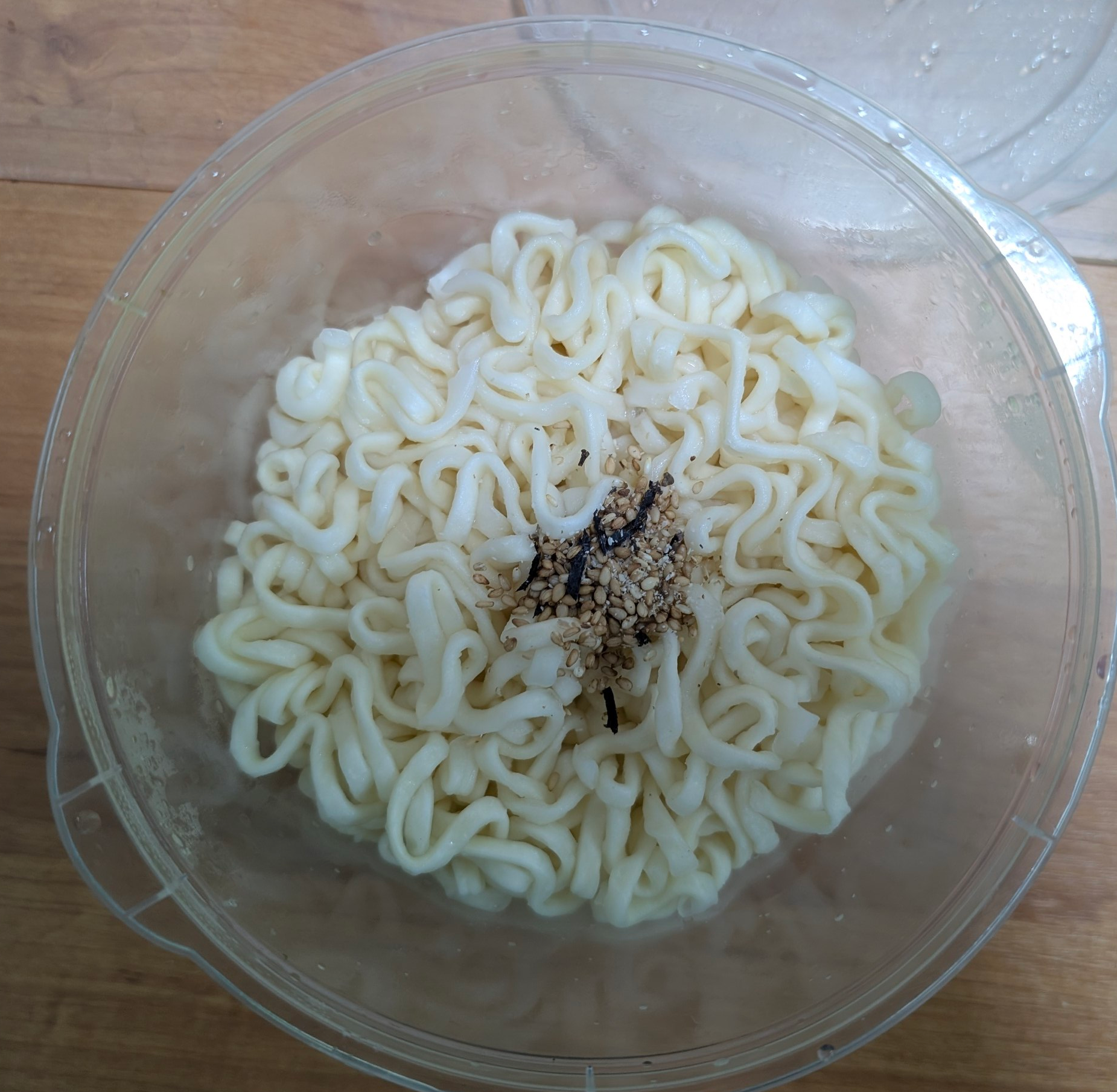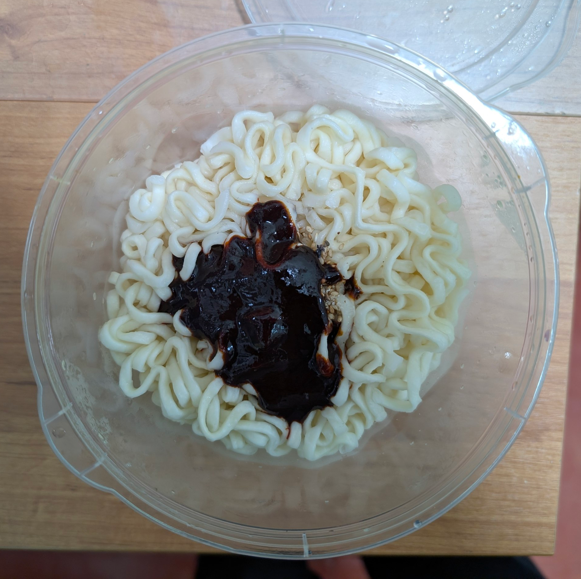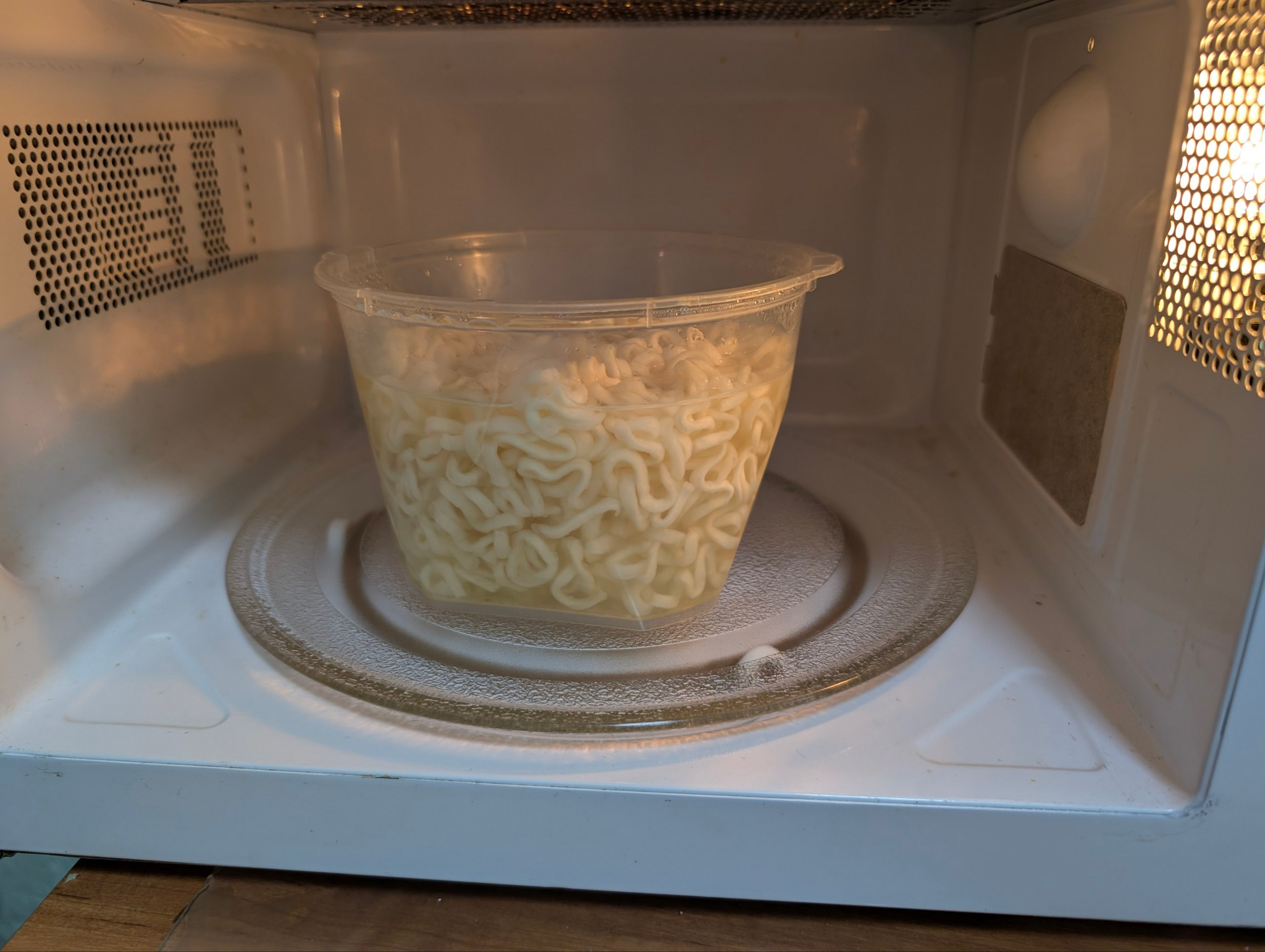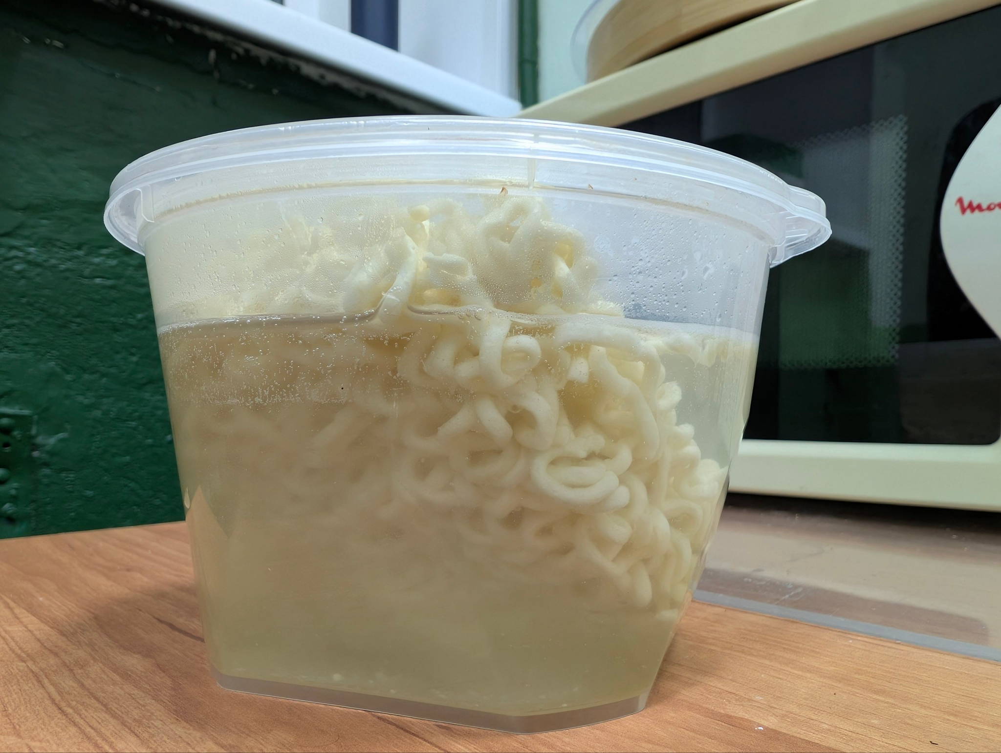 И всё-таки после 6 минут в ведёрке, я решил поставить лапшу в микроволновку на 2 минуты.