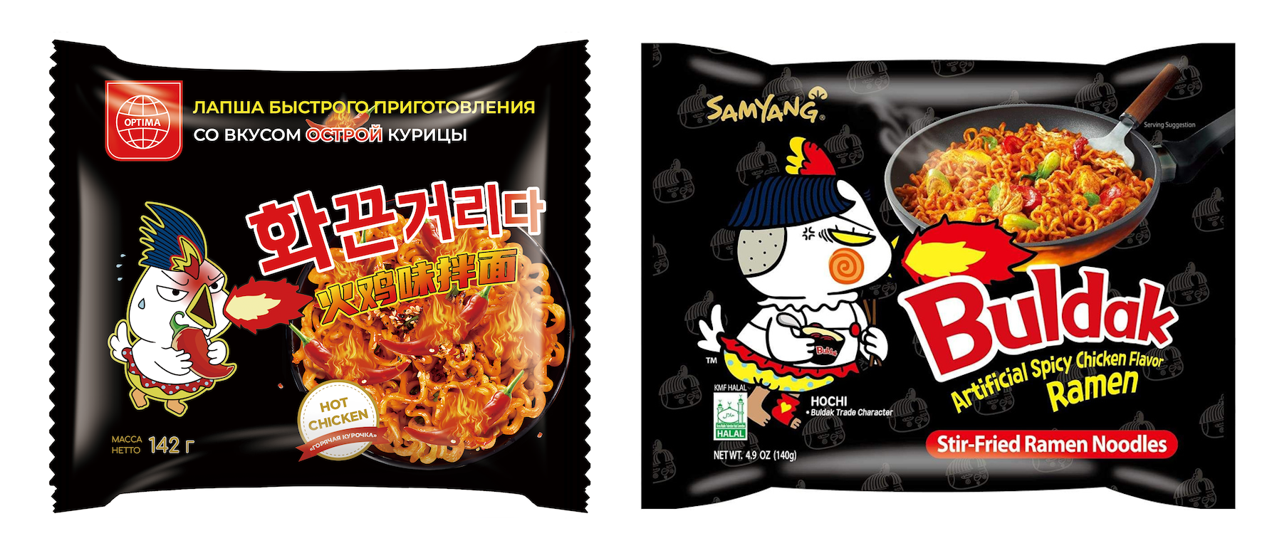Сегодня я раздобыл китайскую лапшу, которая очень уж косит под Buldak. Лапша от фирмы Optima.