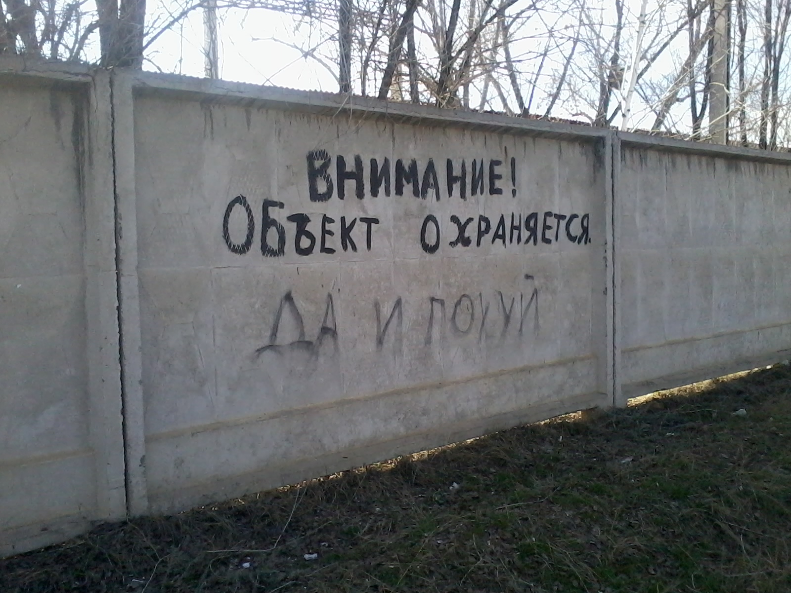 796 dEnya146 Очень охраняемый объект.. 9 лет назад [моё] Мат Забор Охрана Надпись на заборе Фотография Казахстан Актюбинск