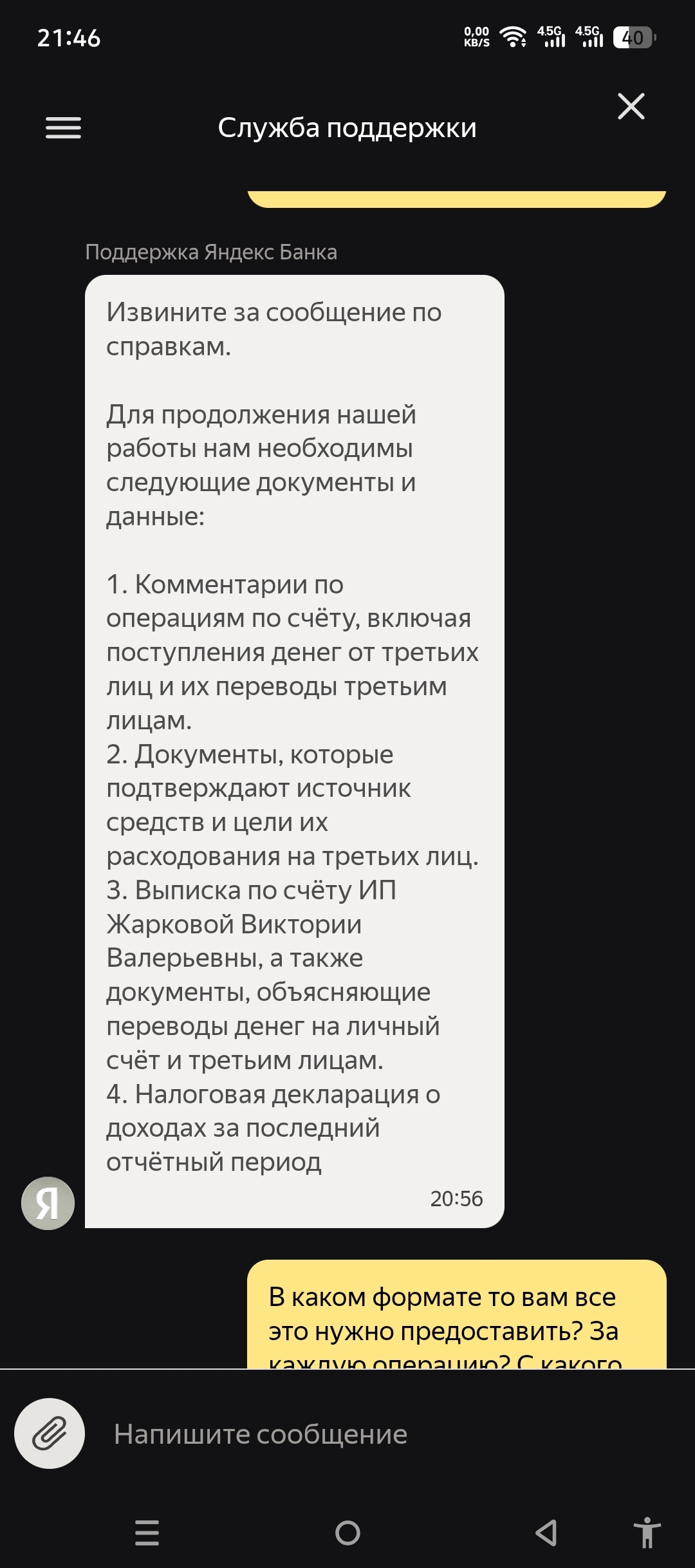 то просят фото с паспортом, ок. То выписки по счету ИП, то декларацию. А вот причину не говорят, и в каком формате мне все это им предоставить тоже не говорят.