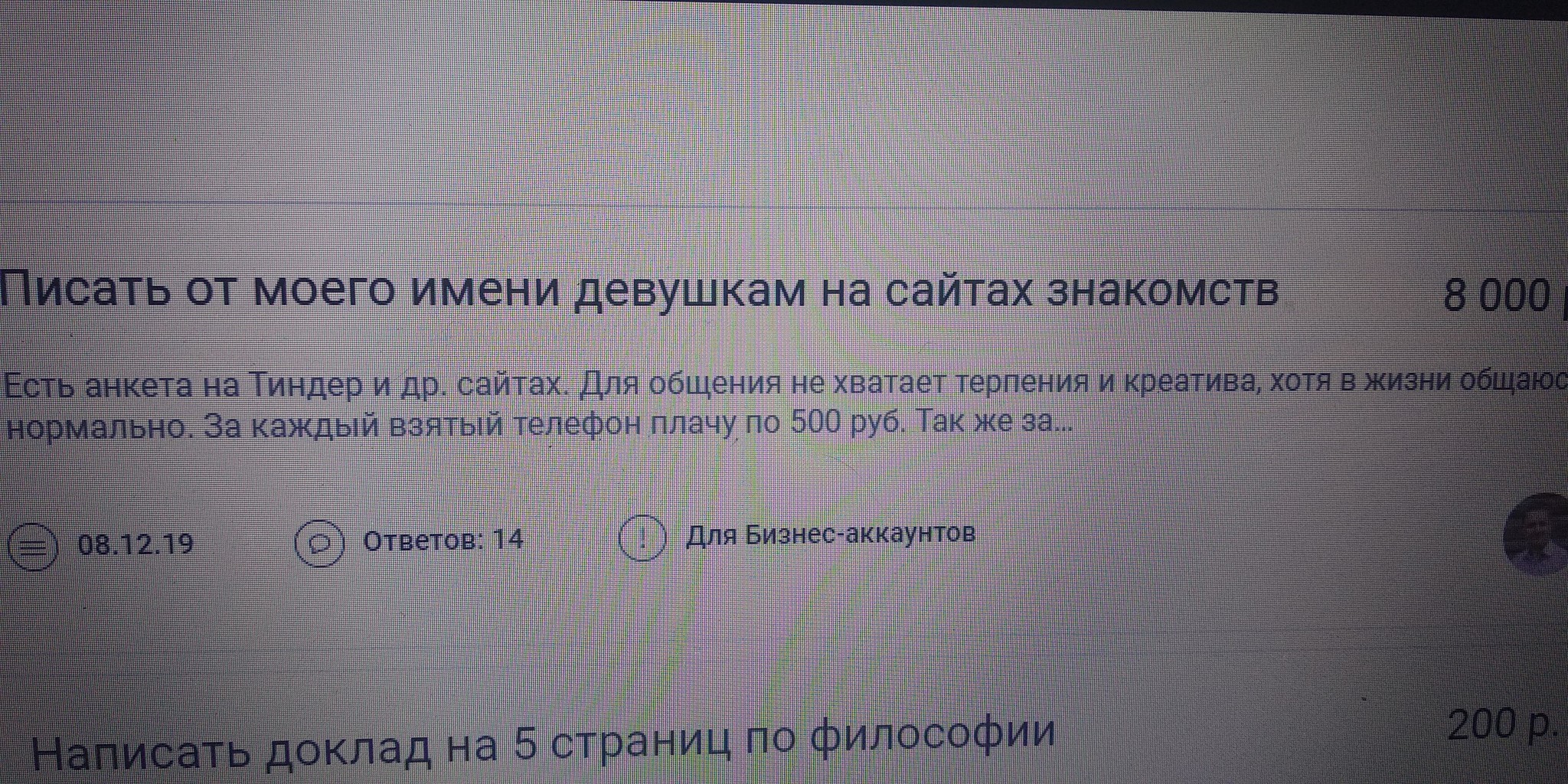 42 garpiya 5 лет назад Лига фрилансеров Очень странное задание на фрилансе Возможно, какой-то развод, но непонятно зачем. Фриланс Знакомства