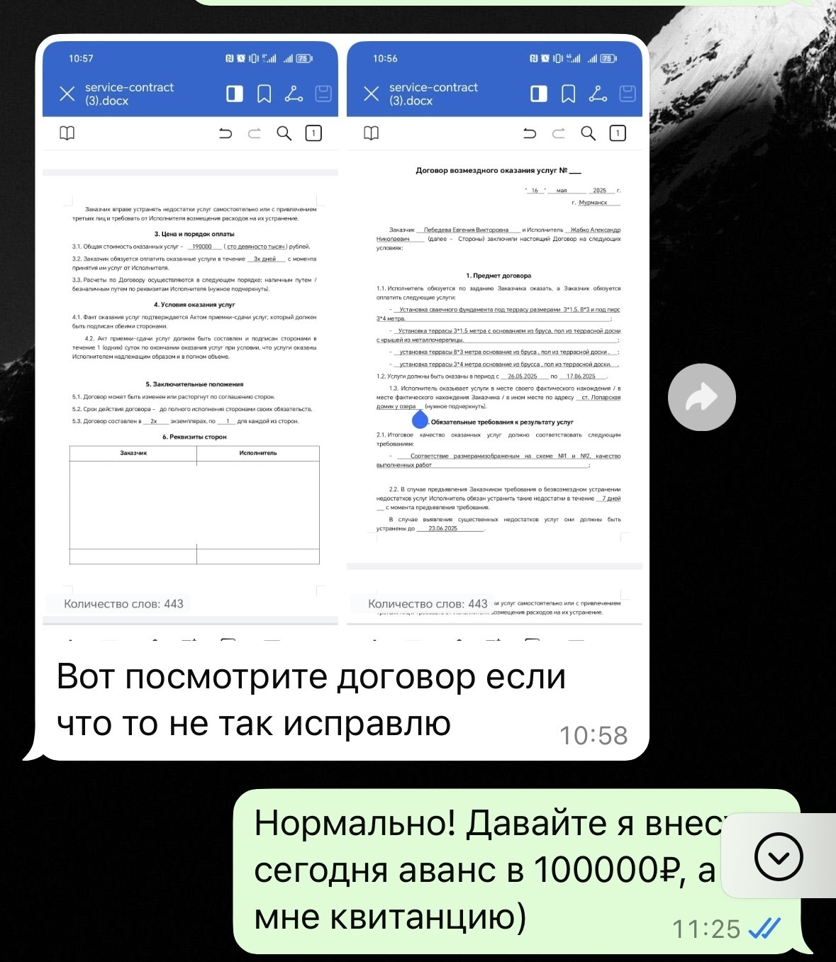Конечно надо вписаться в историю и мы на следующий день договорились о встрече в кафе и заключили договор на 190000₽. Проверили паспортные данные друг друга, я передала аванс в размере 100000₽, получила расписку.