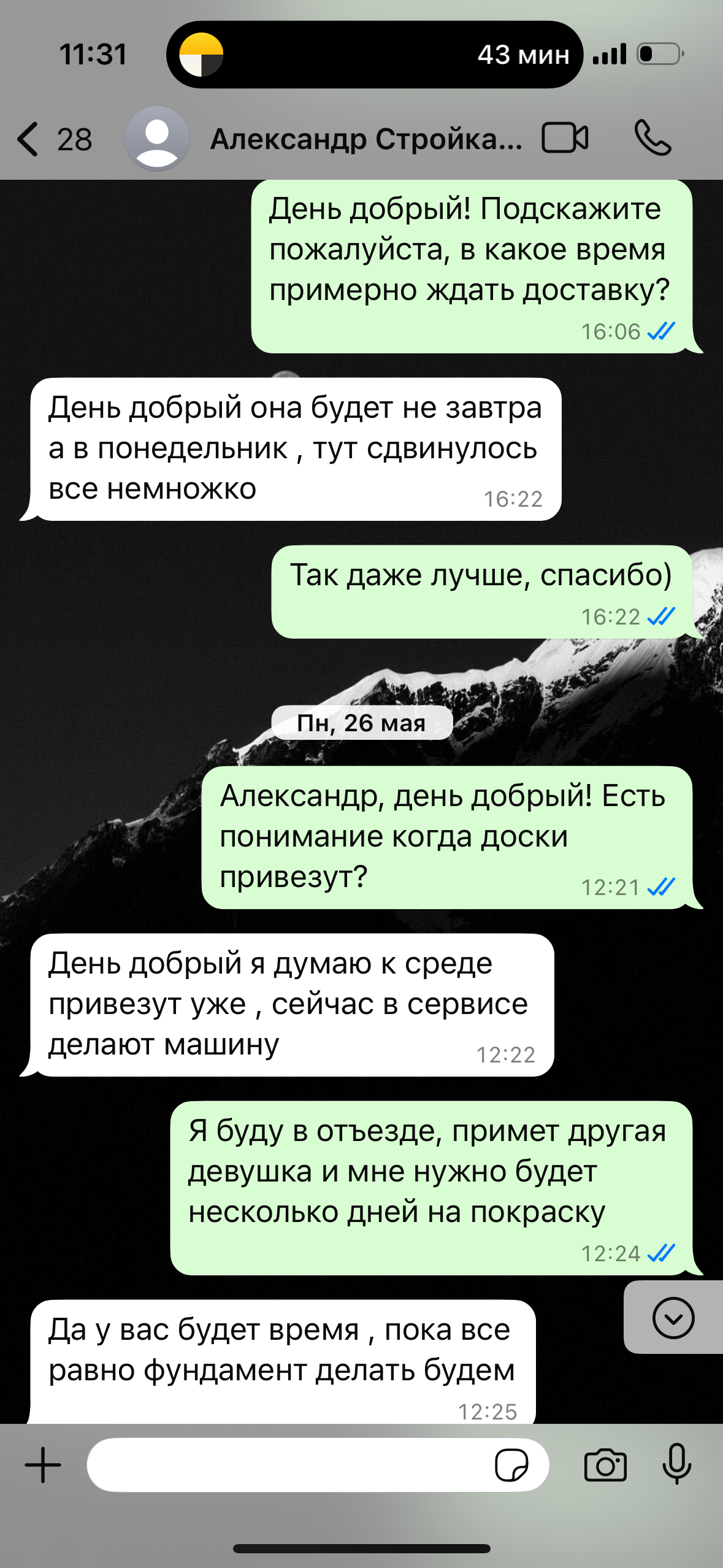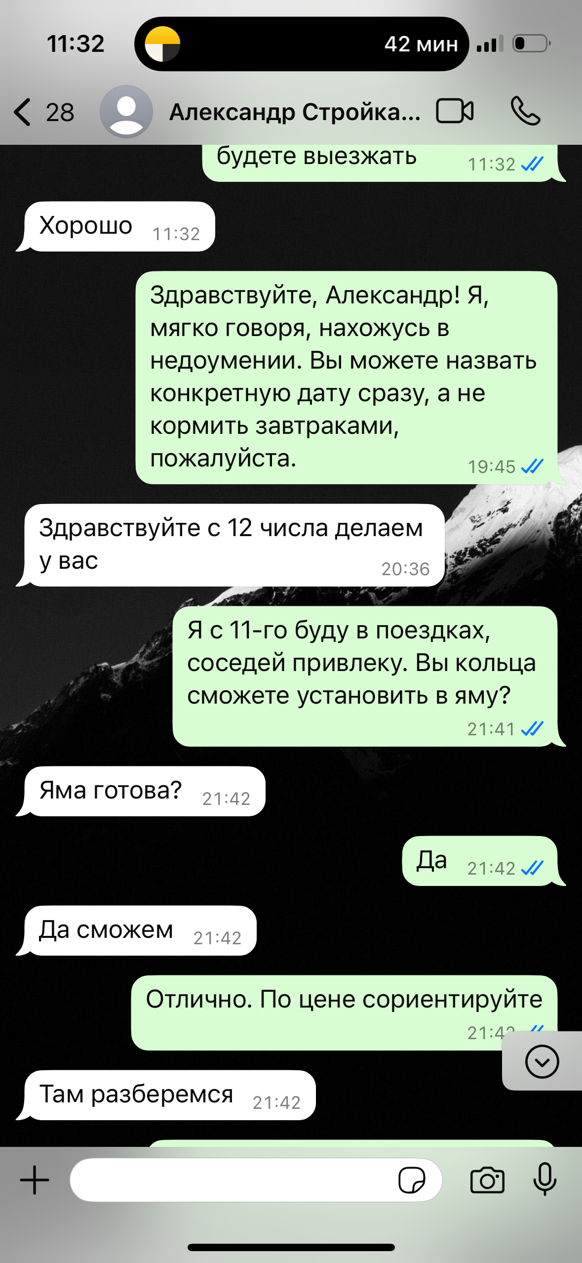 В какой-то из понедельников мы ждали доставку материала и я решила через него купить ещё бетонные кольца и люк, ещё перевела ему 22500₽ и 6000₽ за доставку.