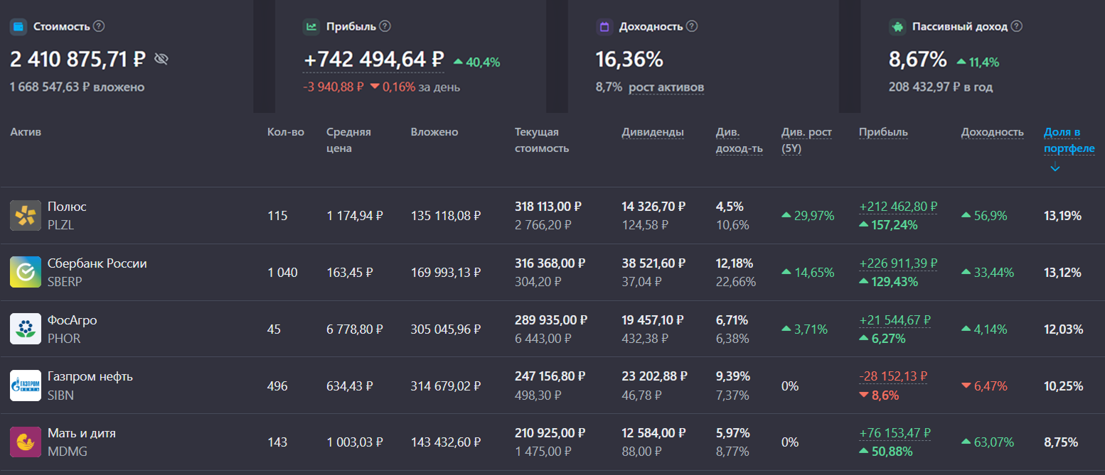 💼 Мой портфель и ТОП-5 акций