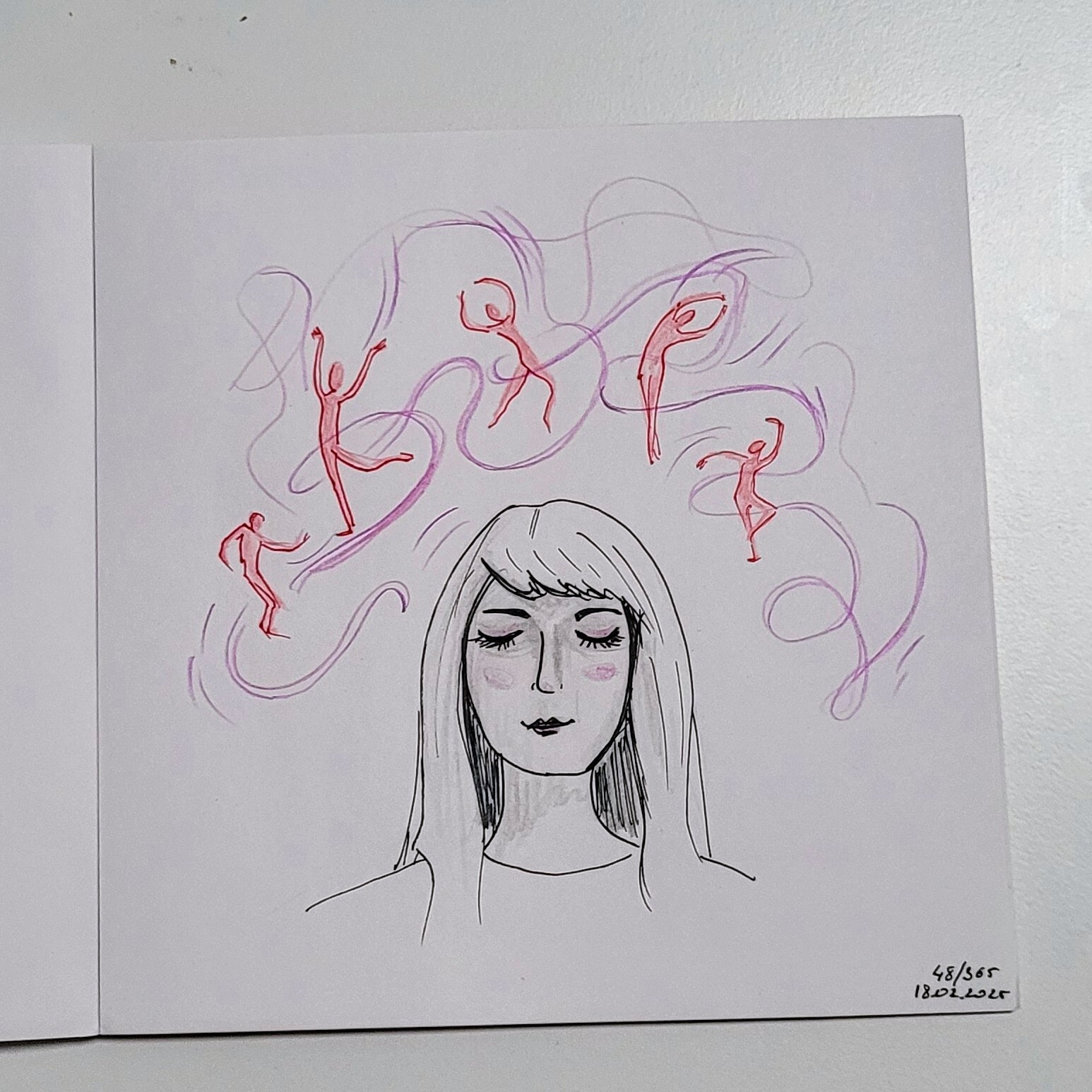 9 GarmoniaHaosa Очередная попытка в "Рисую каждый день". 48/365 11 месяцев назад 18 февраля и " в душе я танцую" [моё] Иллюстрации Скетч Арт Линер Карандаш Танцы Ещё 0